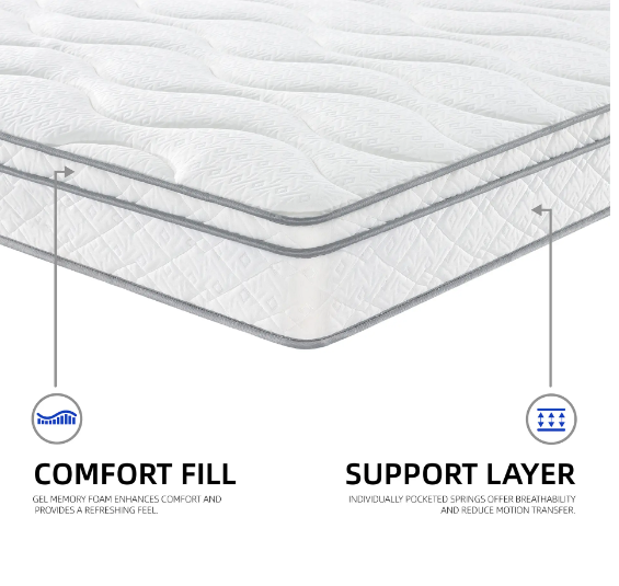 【MOTION ISOLATION FOR UNDISTURBED SLEEP】: It combines memory foam with individual pocketed springs. This unique combination effectively absorbs the noise and vibration generated when you turn over during sleep. The individual pocketed springs offer comprehensive support that spans from head to toe, which helps relieve back pain and daily fatigue. With this mattress, you and your partner can enjoy a peaceful and comfortable night's rest.