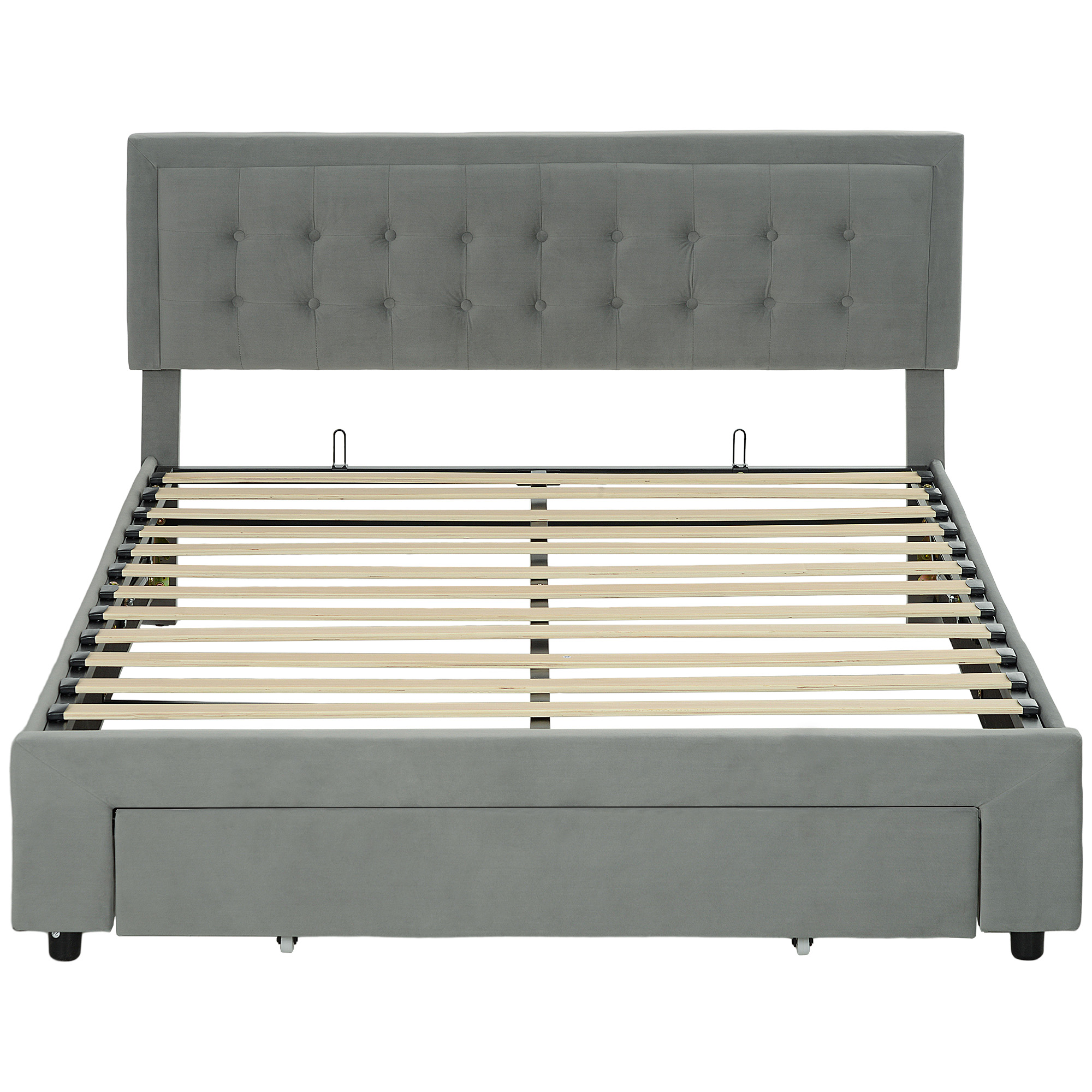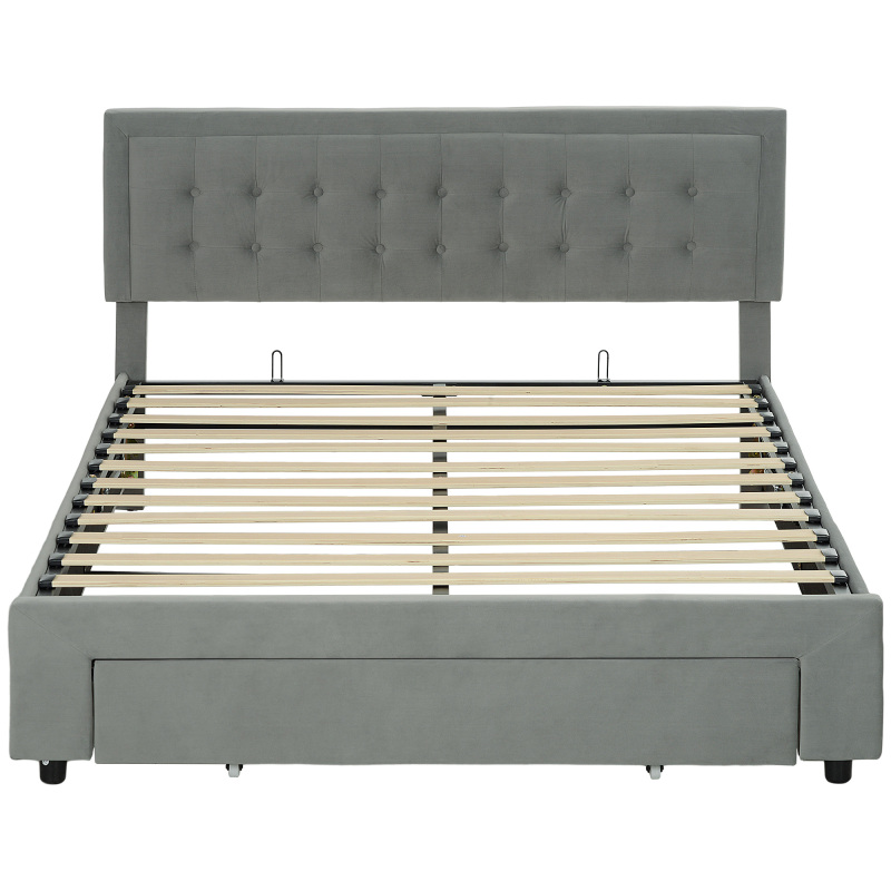 King Size Ottoman Bed Frame, With Front Drawer - Grey