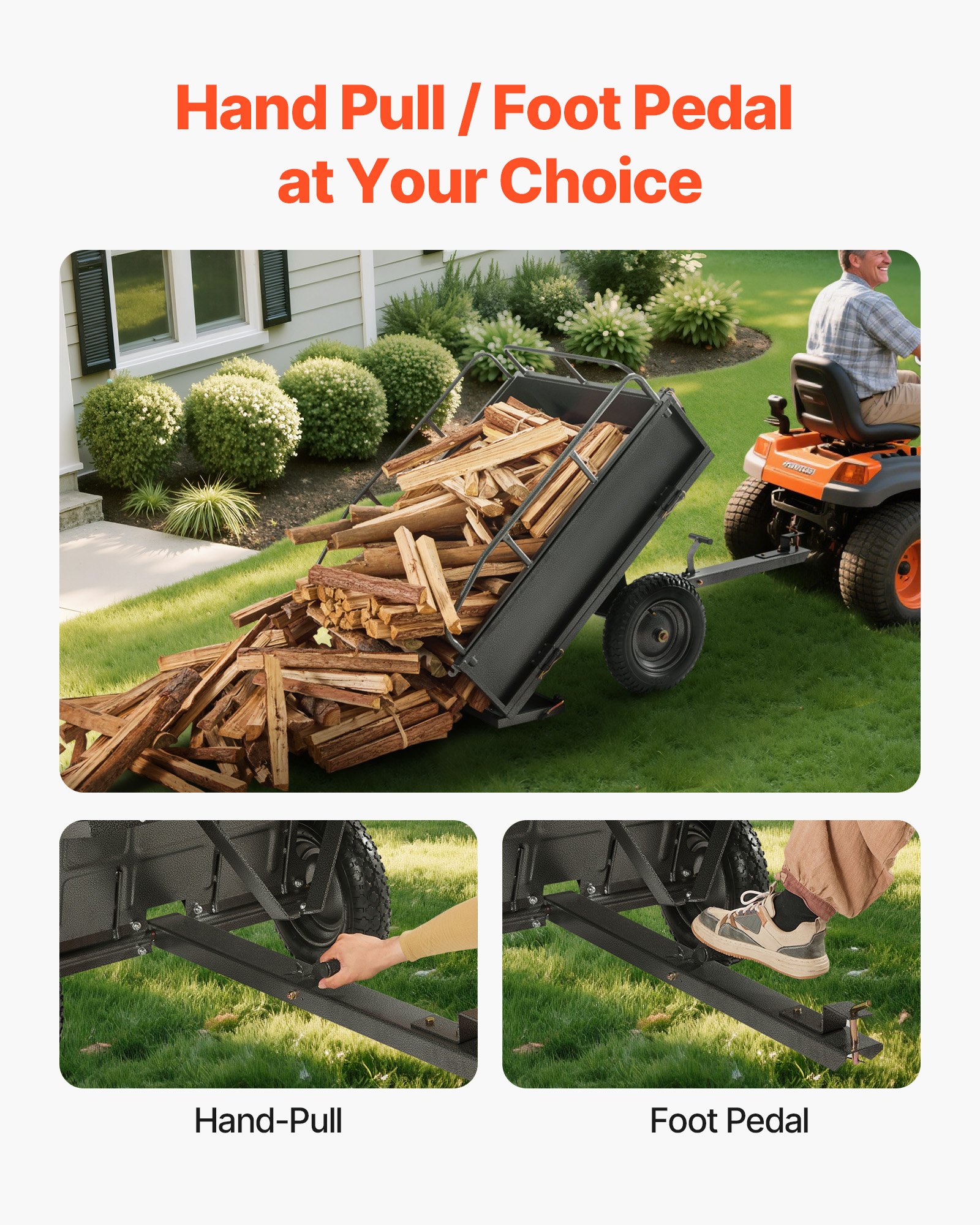 VEVOR Kippanhänger, 226,79 kg Fassungsvermögen, ATV-UTV-Transportanhänger 142x76x70 cm, Kippwagen mit 35,56 cm Reifen, Handzug oder Fußpedal, Hofanhänger für Rasenmähertraktoren