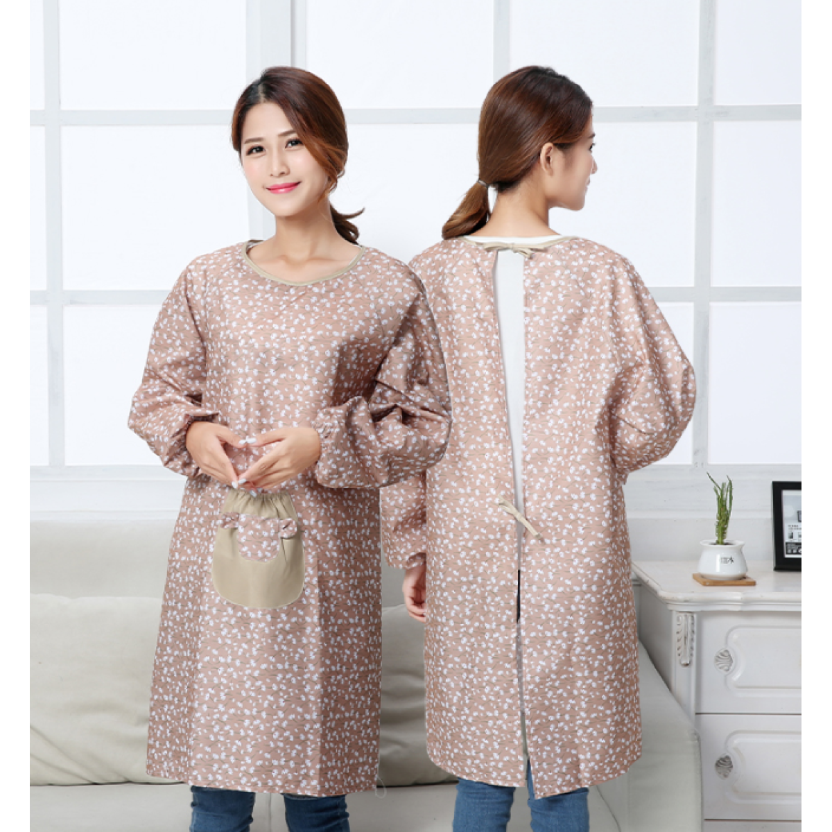 Kitchen apron with long sleeves
