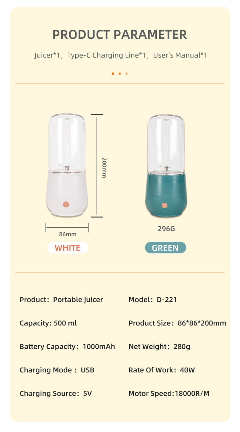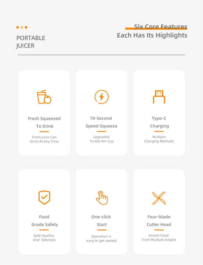 Additional functions: wall breaking, complementary food nutrition, portable charging, automatic cleaning, silent noise reduction, rapid pulp discharge