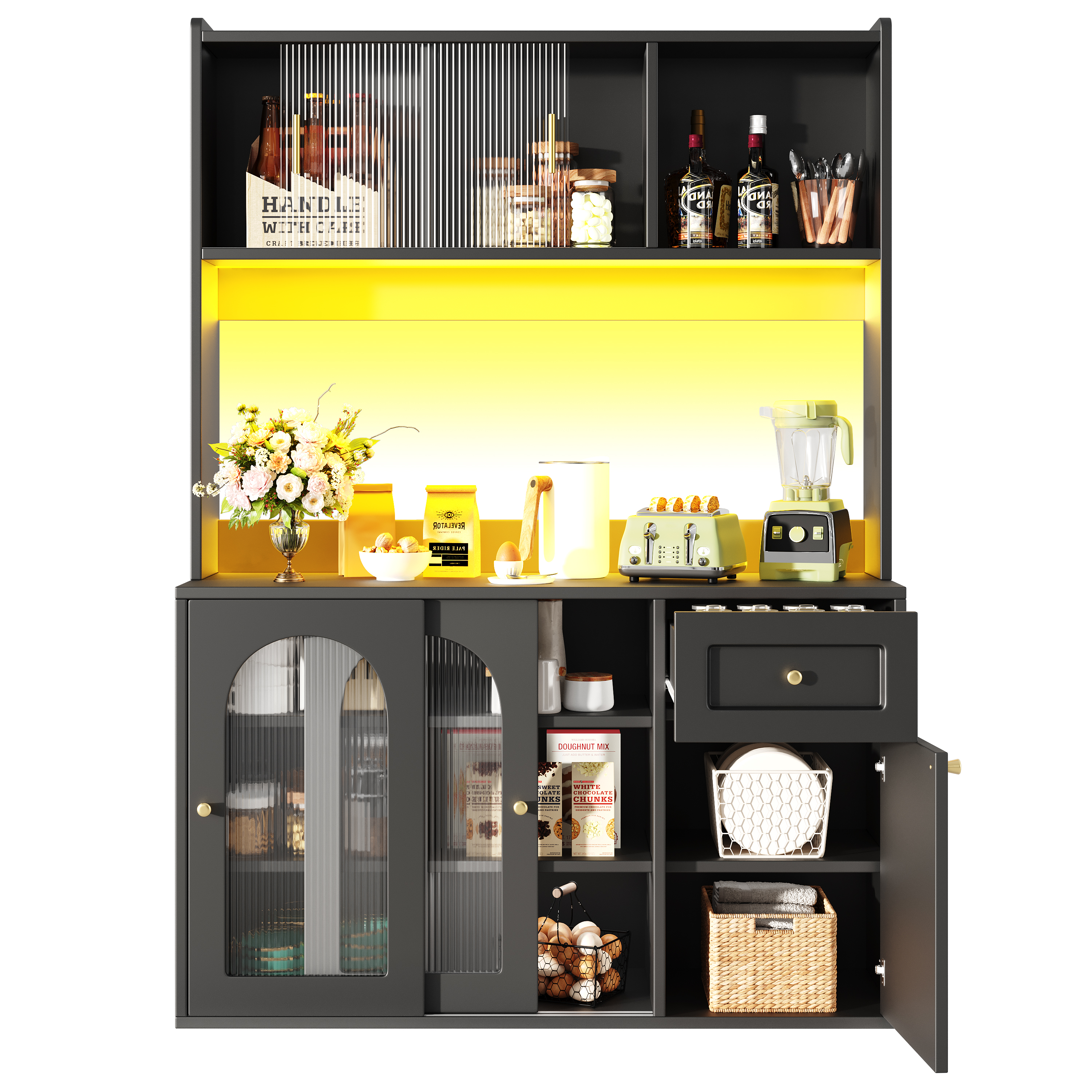• Practical Storage Space: This kitchen cabinet offers generous storage with adjustable shelves, conveniently accommodating items of various sizes. The spacious worktop provides ample room for kitchen appliances, helping you eliminate clutter and easily achieve an ideally organized kitchen.