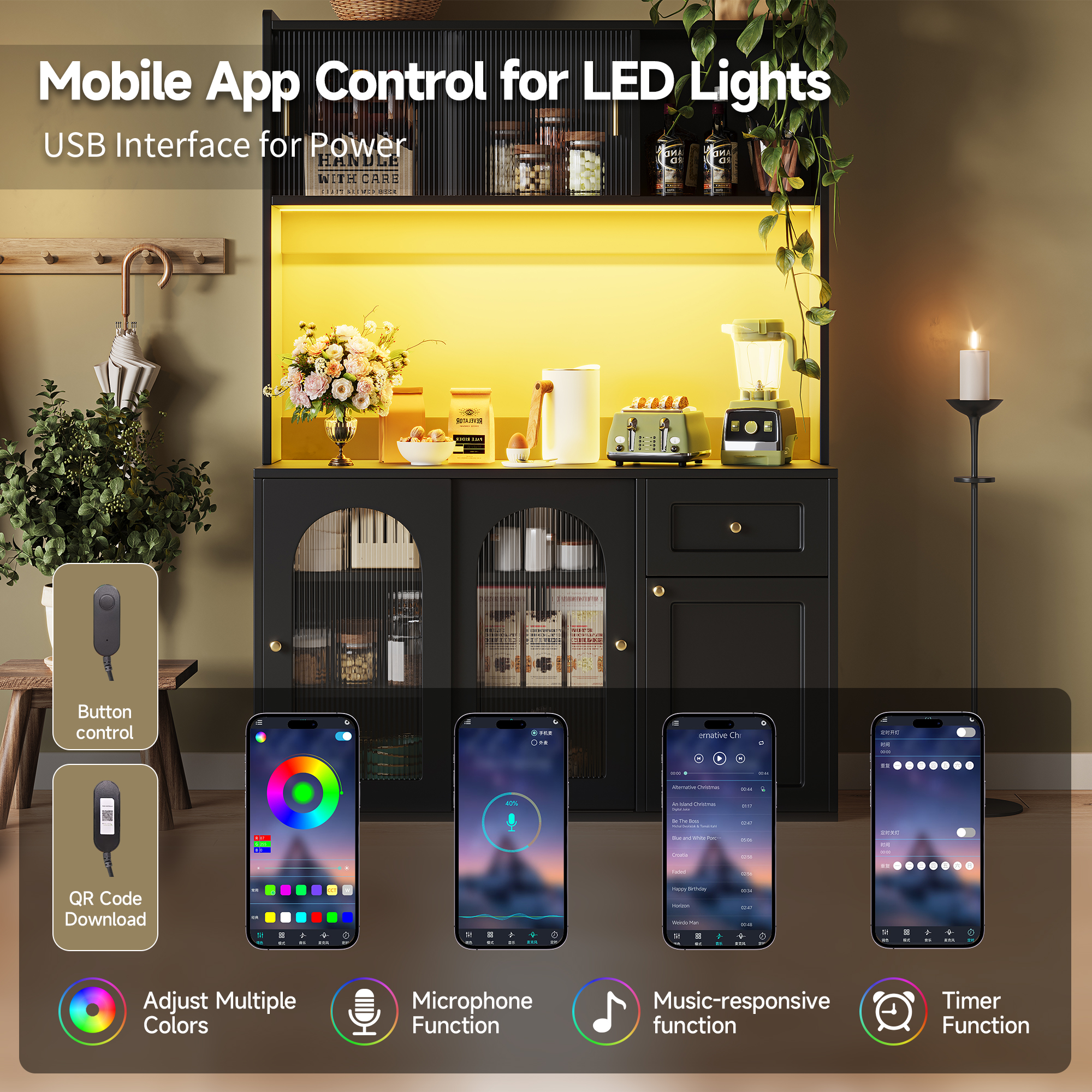• Multifunctional LED Light Control: Features a mobile app for controlling the LED lights, allowing you to easily change colors and create a personalized lighting atmosphere. By scanning and downloading the dedicated app, you can access local music files. The lights will synchronize in real-time with the music's intensity and rhythm, providing an immersive audiovisual experience.
