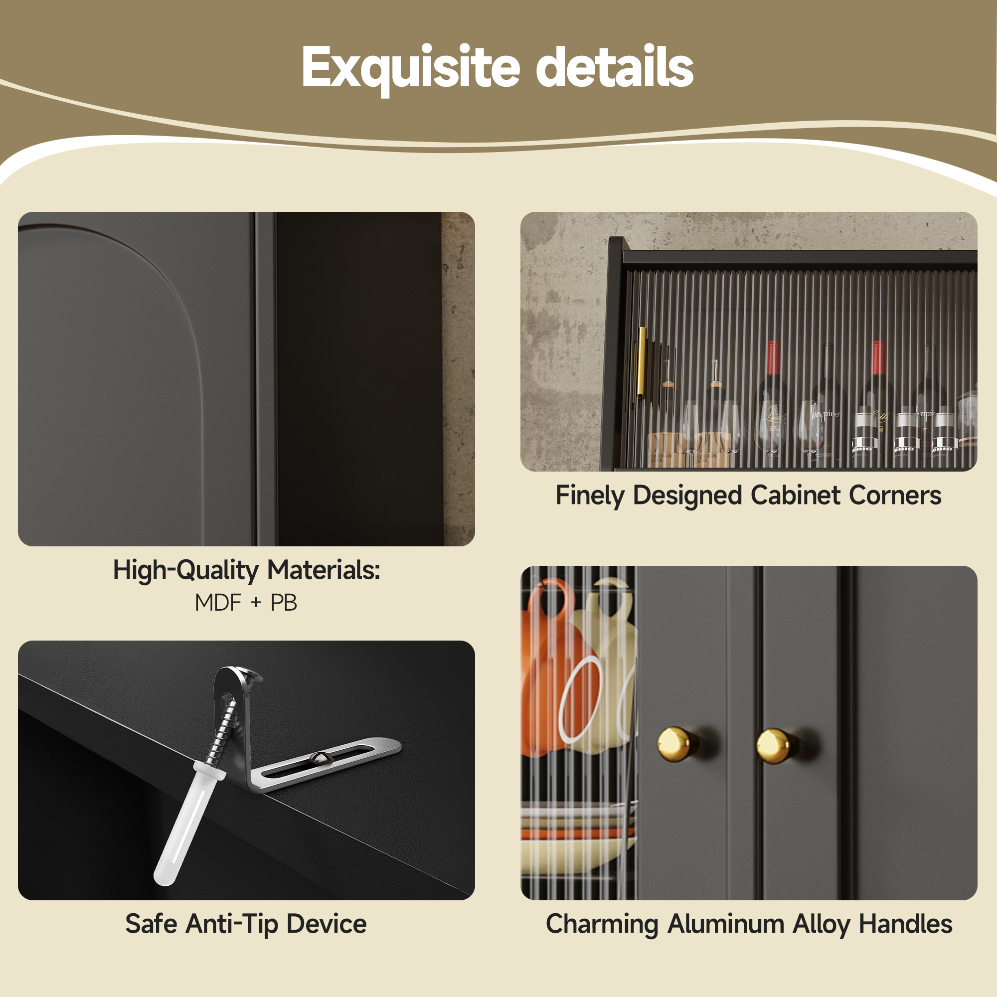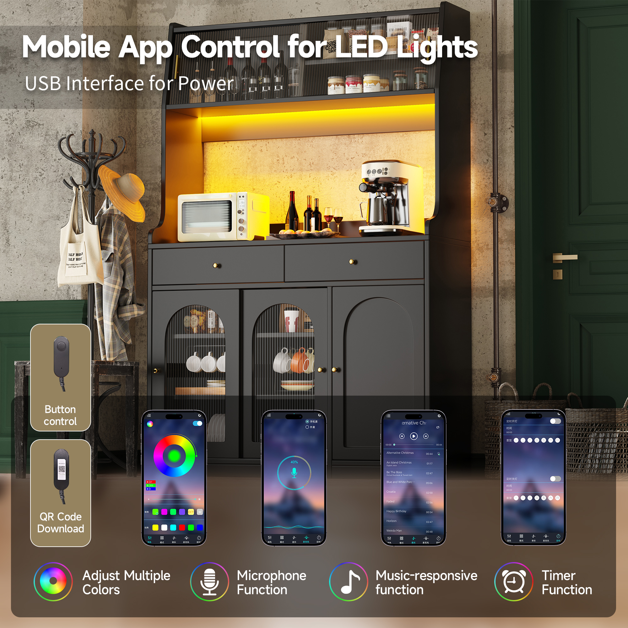 Product Name:Kitchen Cabinet(120*40*180cm), Tall Cabinet, Display Cabinet, Buffet Cabinet with Adjustable Shelves, Dining Room Cabinet with 2 Drawers, Sideboard with LED Lighting, Variable Light Colors, Black