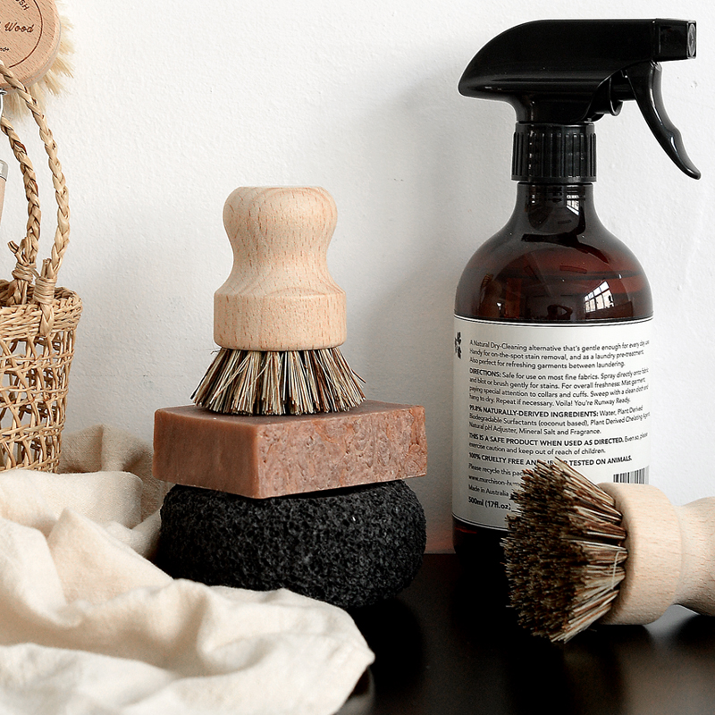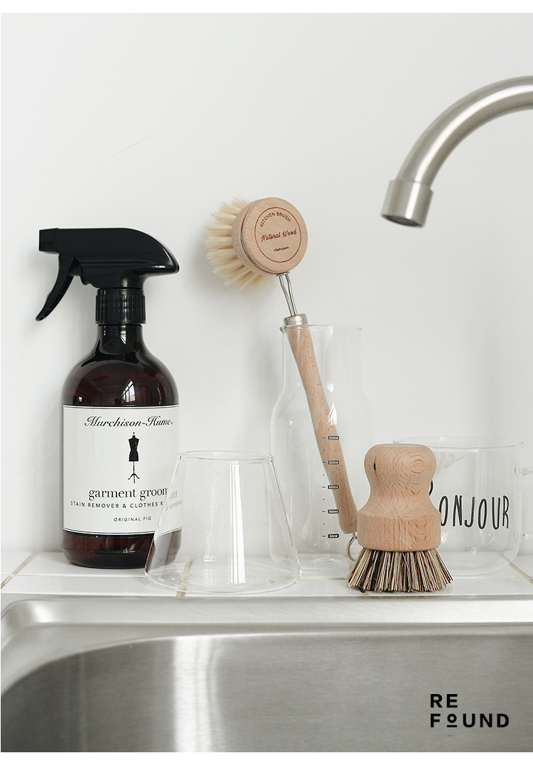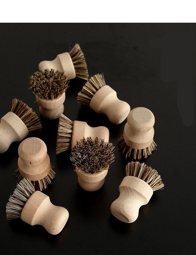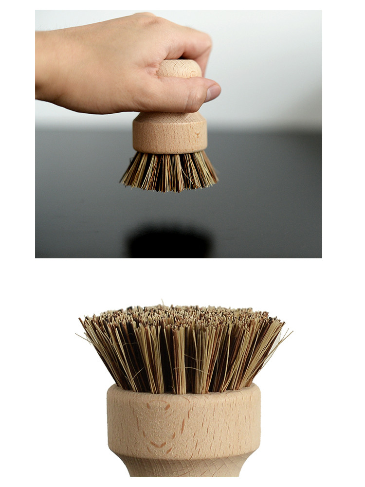 Kitchen Decontamination Non-stick Oil Hard Hair Shabu Wooden Handle Hand-held Natural Plant Fiber