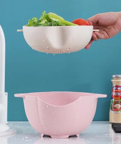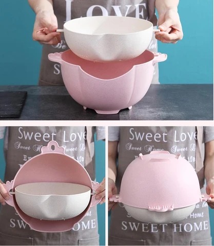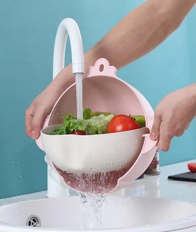 The colander is suitable for cleaning fruits and vegetables, and can also be used to hold fruits. The automatic rotation design can keep the trainer's balance at all times, allowing you to drain the water quickly and easily after washing the vegetables. The double-layer rotatable 360° basket prevents fruits and vegetables from falling when they drain from the colander. These colanders are easy to use. After washing fruits and vegetables, you can flip the drain basket and drain them without separating them. When not in use, they can be directly placed together to save more space.