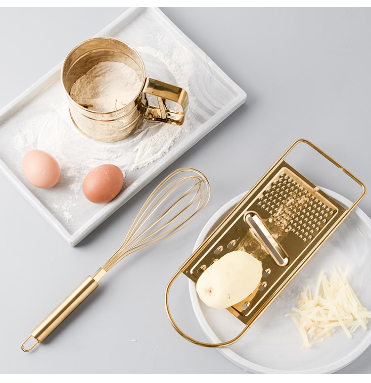 Features: stainless steel gold-plated appearance, hook design can be hung, meet the needs of the kitchen, easy to store clean and tidy