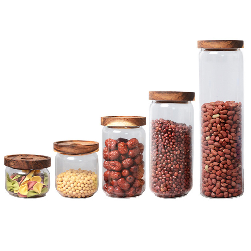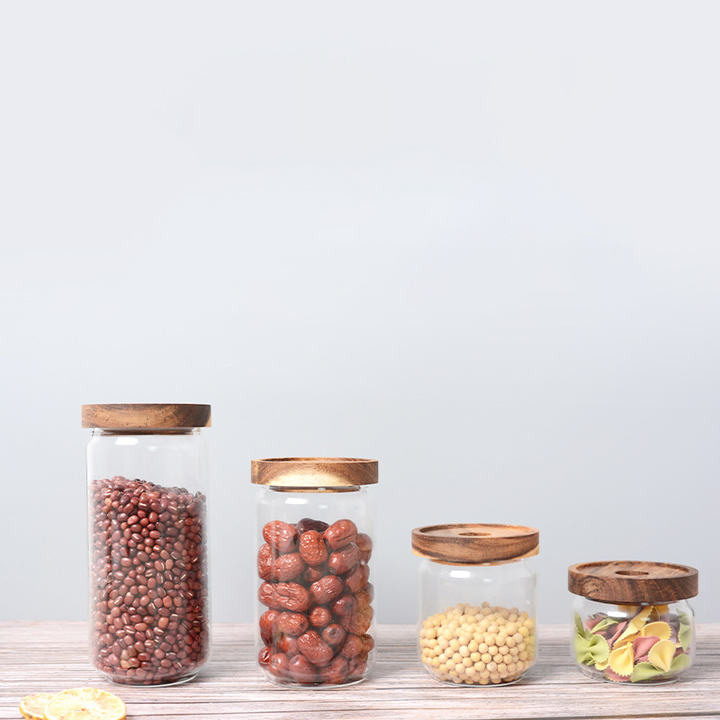 Color: Diameter 9cm high 7cm + Acacia Wood cover 250ml, diameter 9cm high 10cm + Acacia wood cover 450ml, diameter 9cm high 15cm + Acacia wood cover 750ml, diameter 9cm high 19cm + Acacia wood cover 950ml, diameter 9cm high 29.5cm + Acacia wood cover 1550ml
