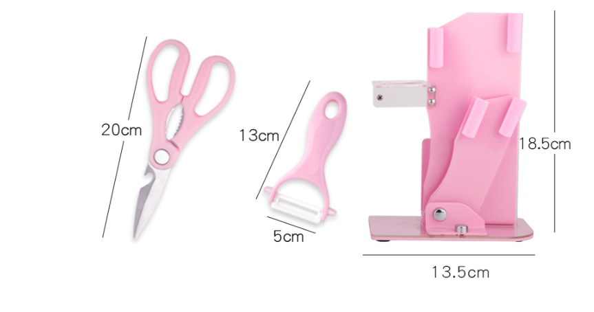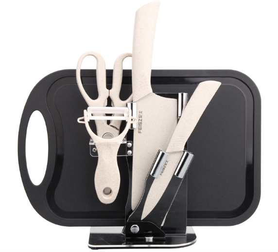A: Kitchen knife + fruit knife + short planer + scissors + double knife holder + cutting board