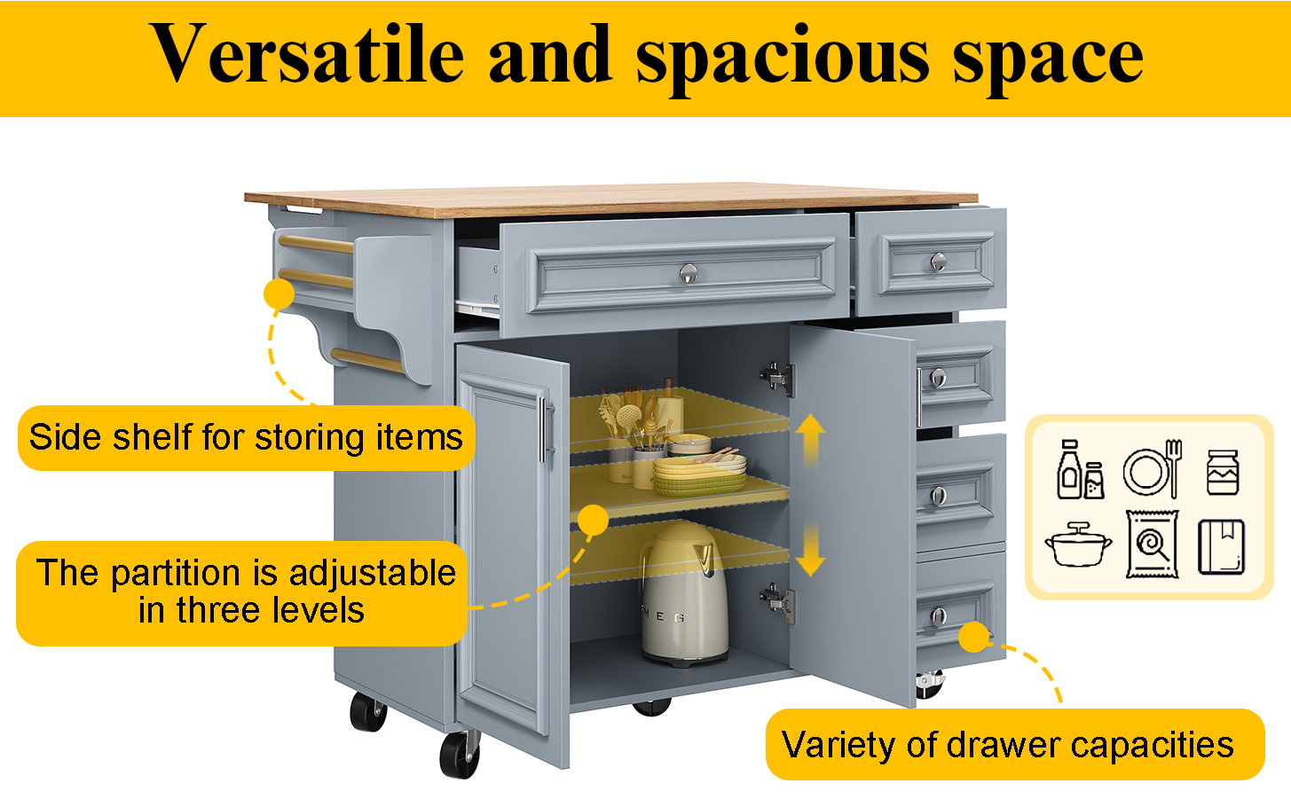 | Scope of delivery | One kitchen island, parts for assembly |