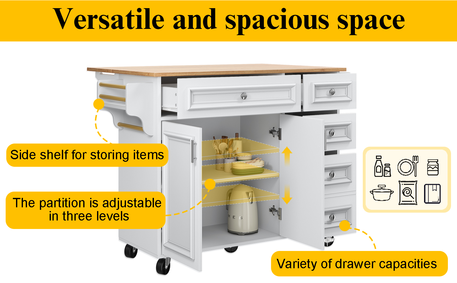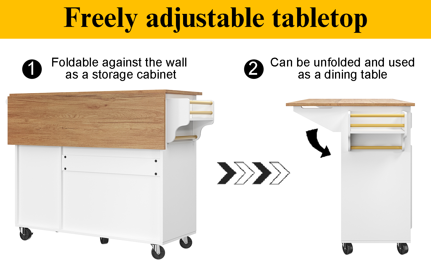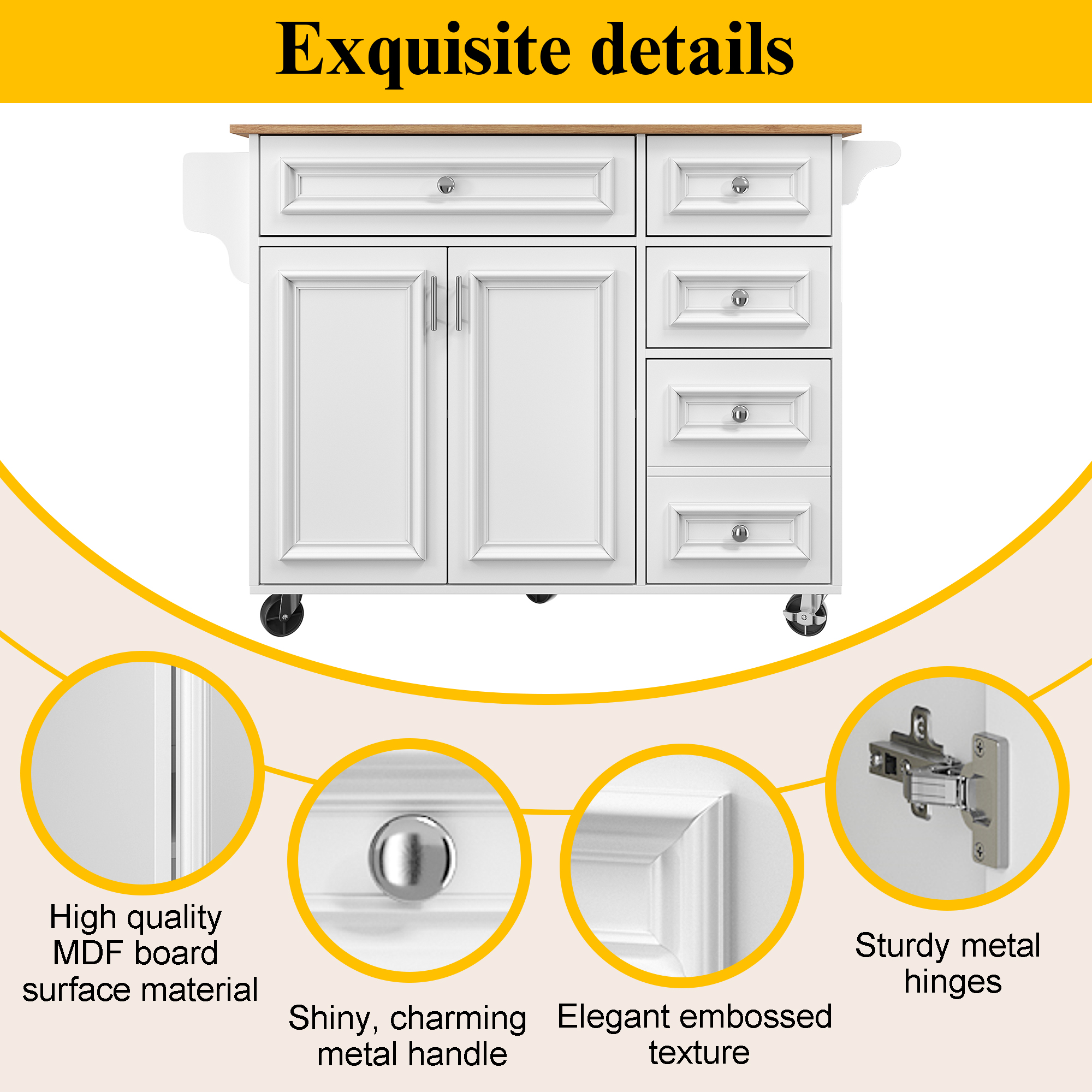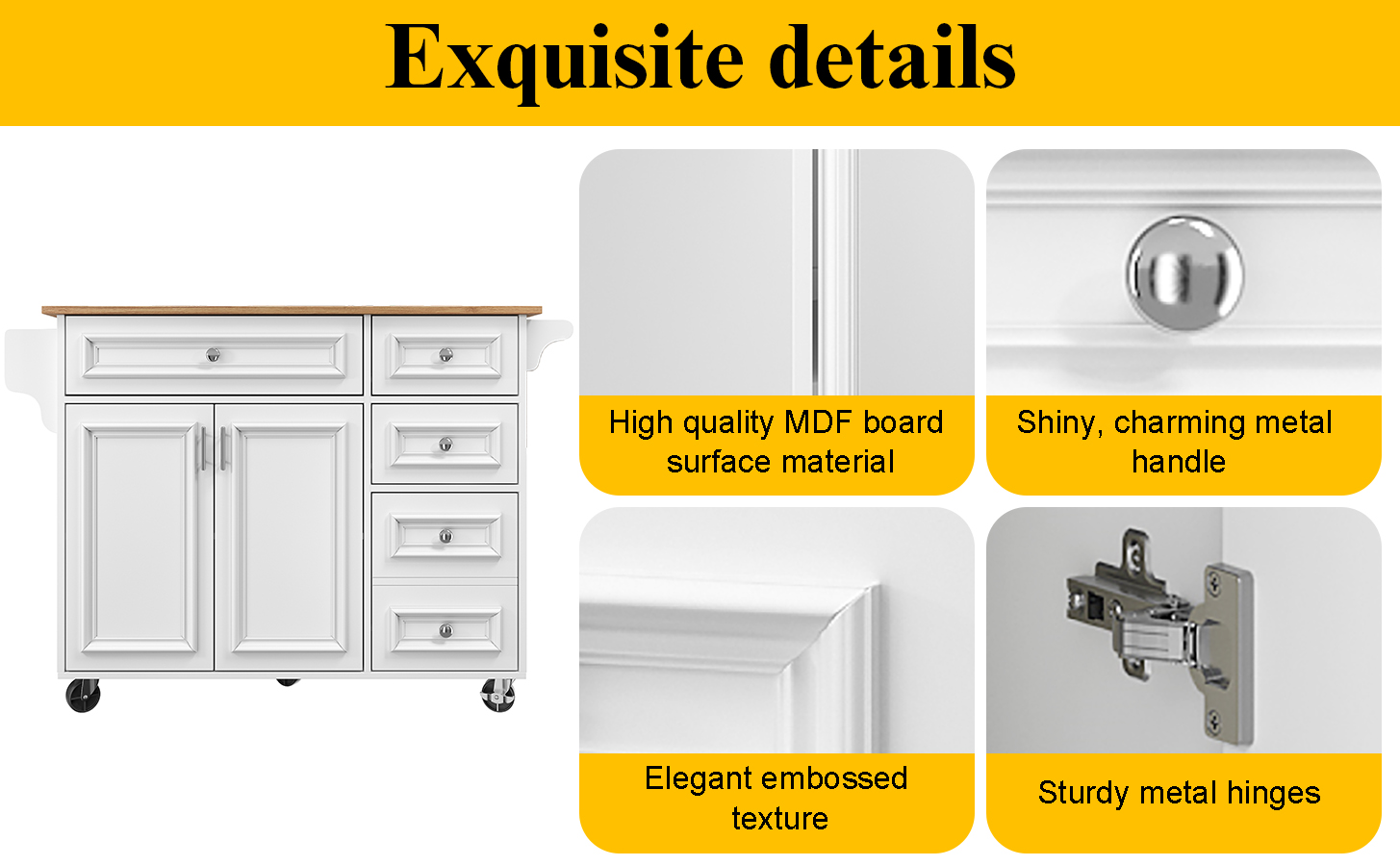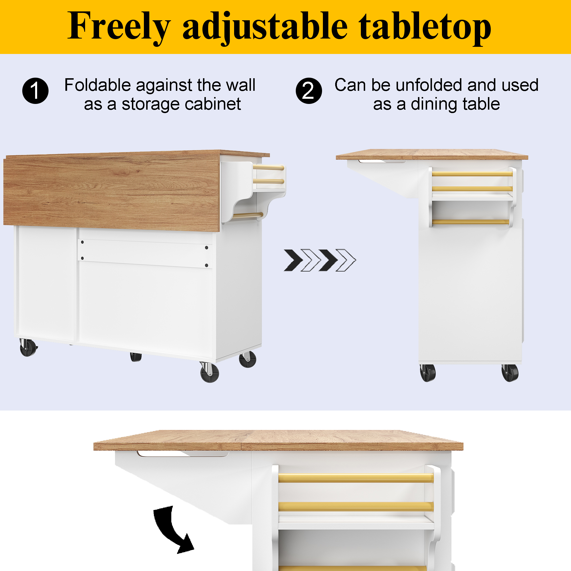 Product Name:Kitchen island (110×45-75×92cm), removable serving trolley buffet cabinet, dining trolley with vintage pattern, buffet cabinet, multifunctional dining table with storage space, White