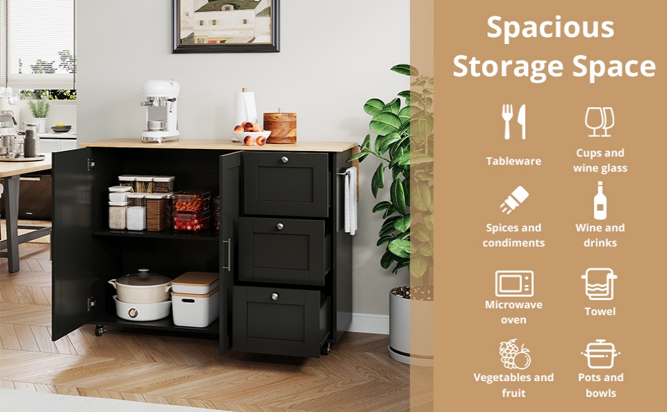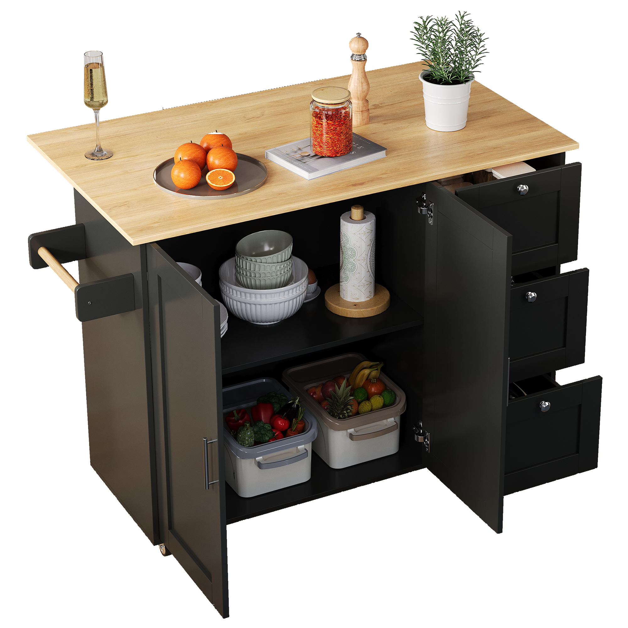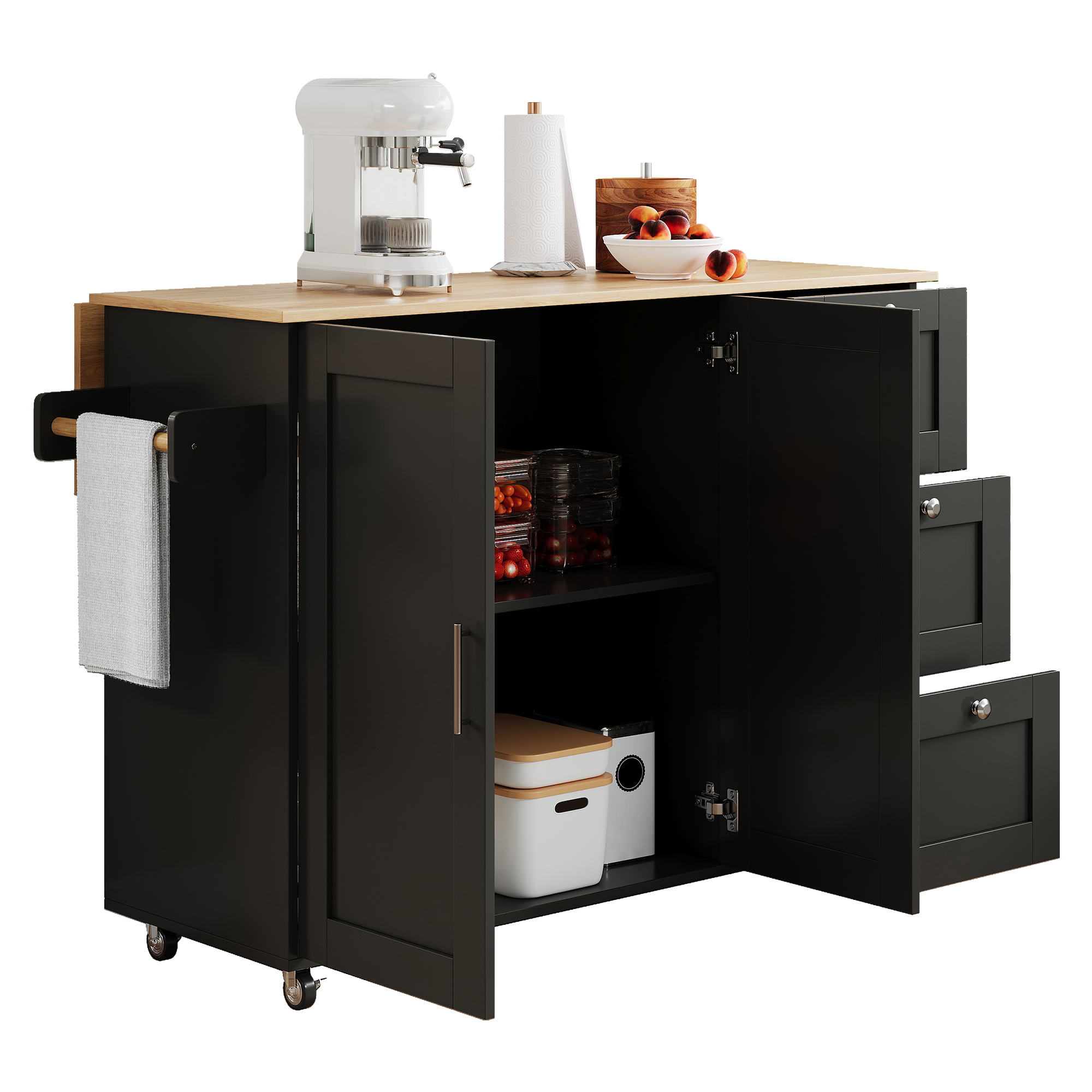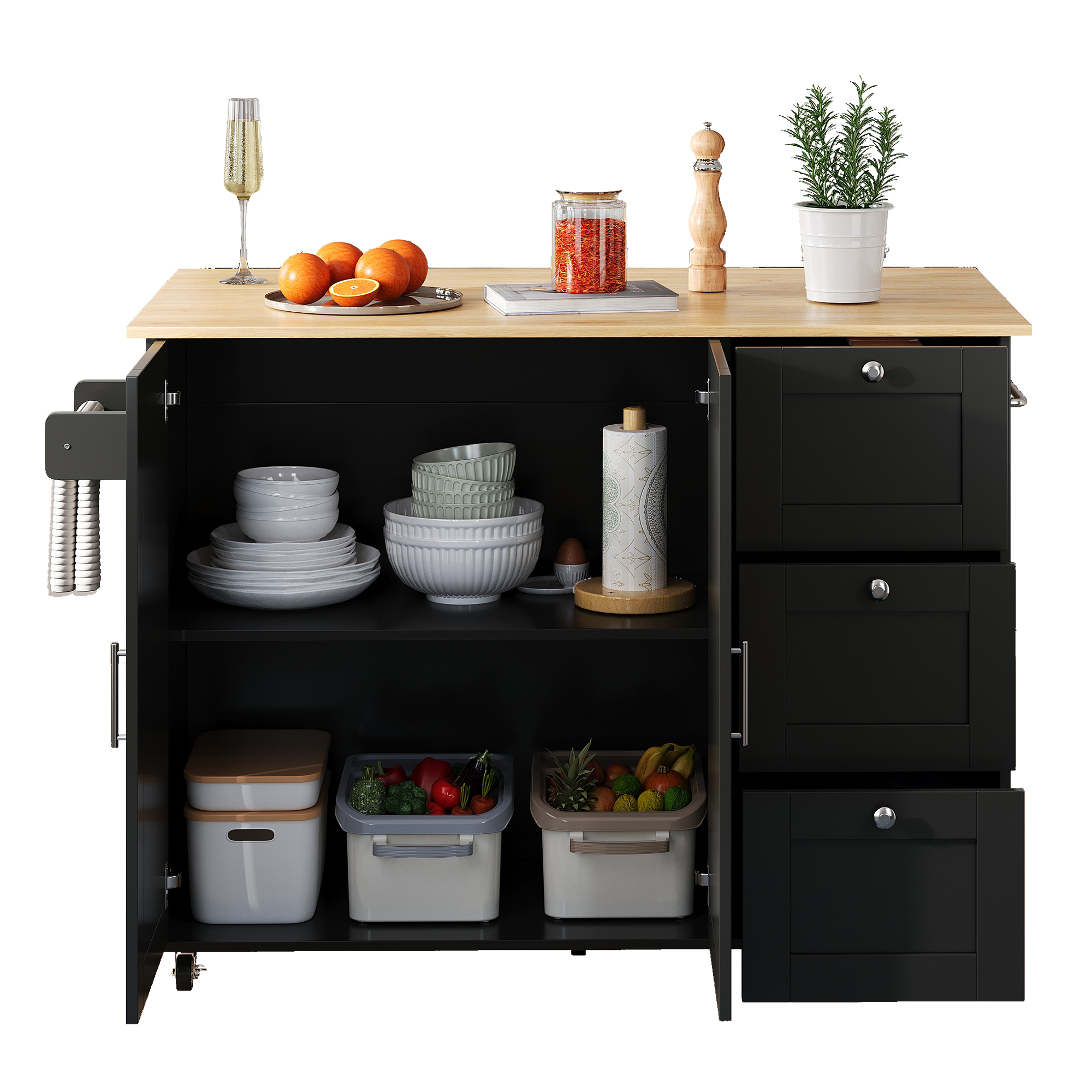 Product Name:Kitchen Island on Wheels, Rolling Storage Trolley with Foldable Tabletop, 3 Drawers, 2 Doors, Lockable Swivel Wheels, Towel Rack – Versatile for Dining Room & Living Room, 135*44(70)*90cm