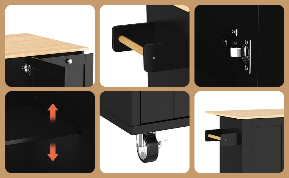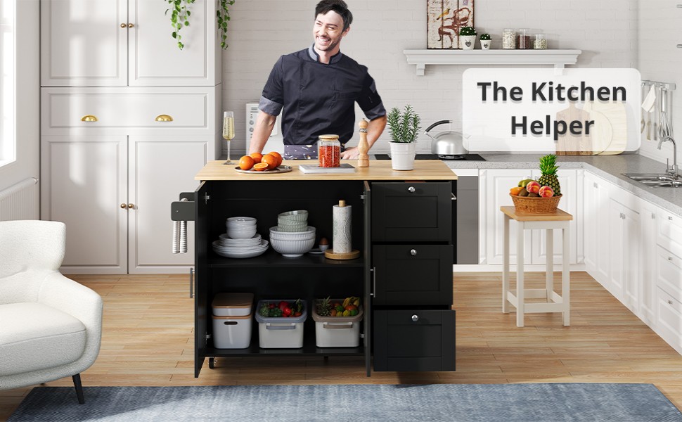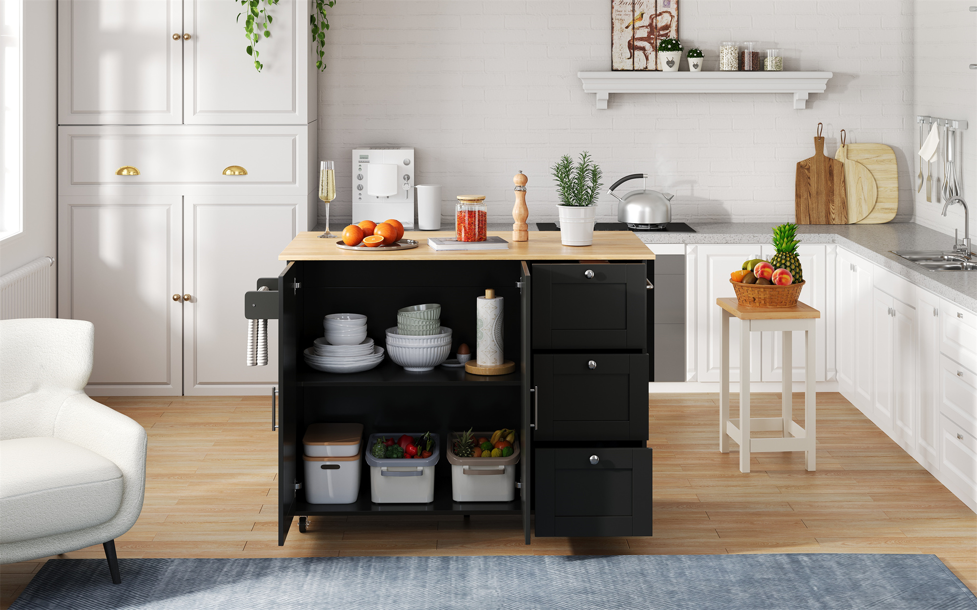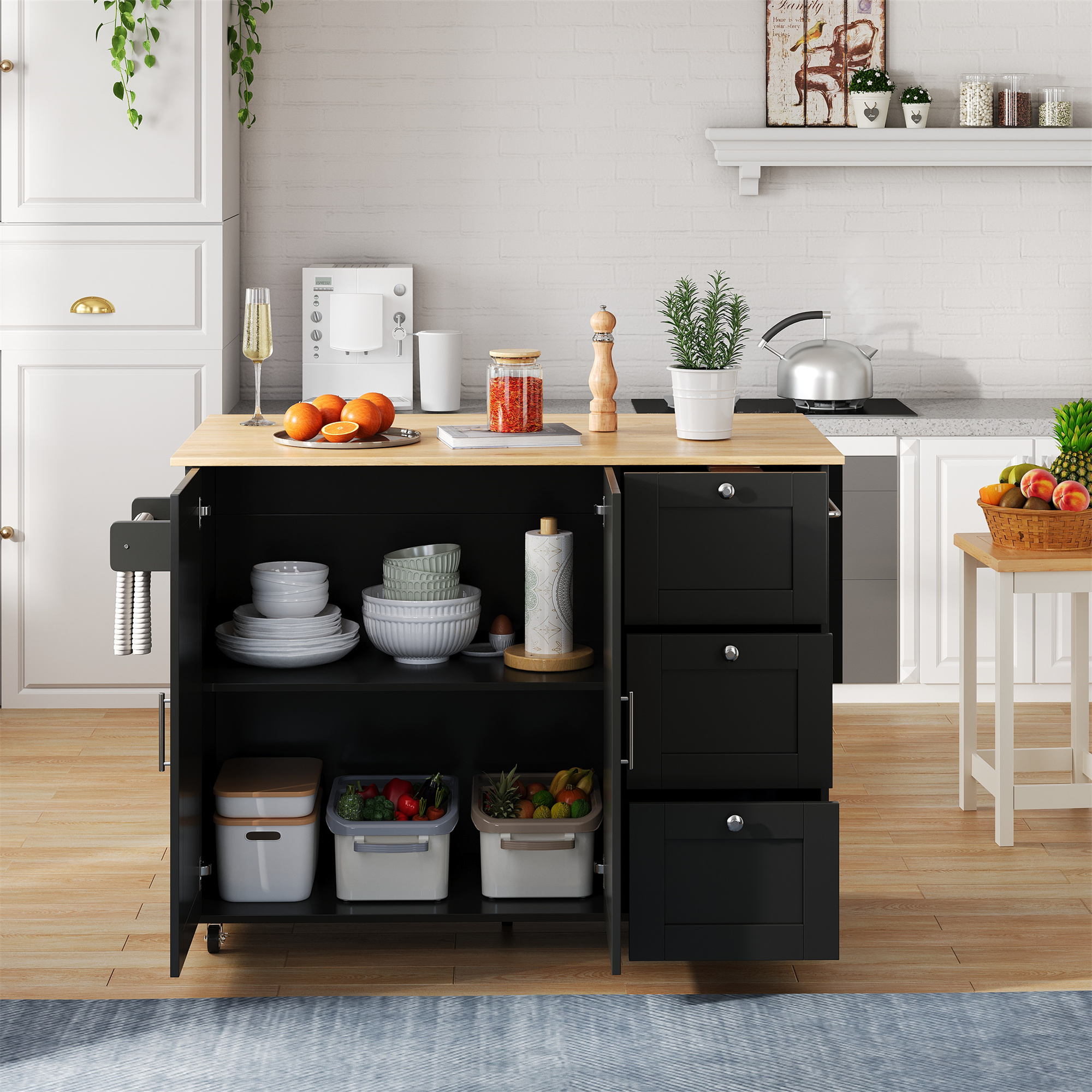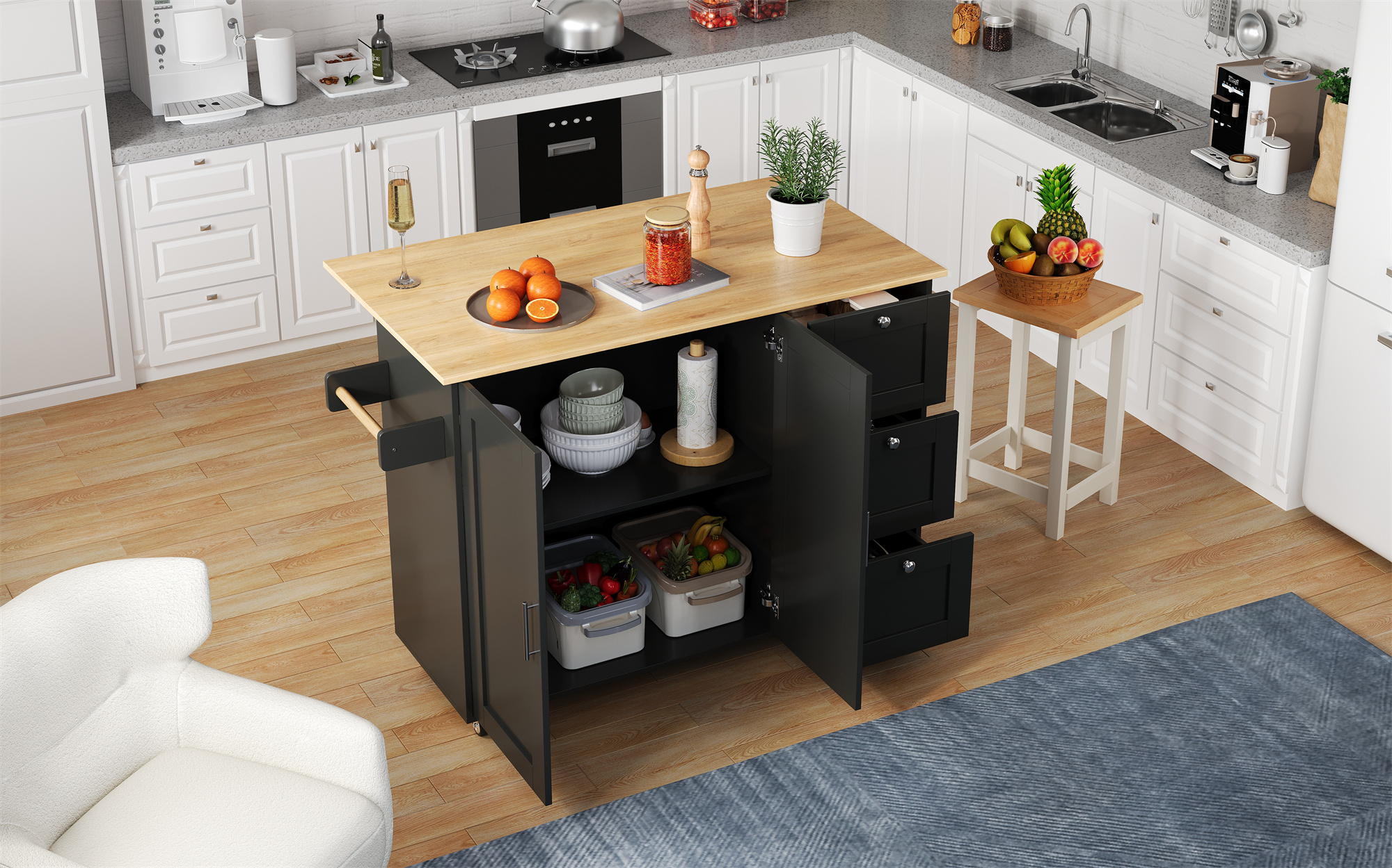 Product Name:Kitchen Island on Wheels, Rolling Storage Trolley with Foldable Tabletop, 3 Drawers, 2 Doors, Lockable Swivel Wheels, Towel Rack – Versatile for Dining Room & Living Room, 135*44(70)*90cm