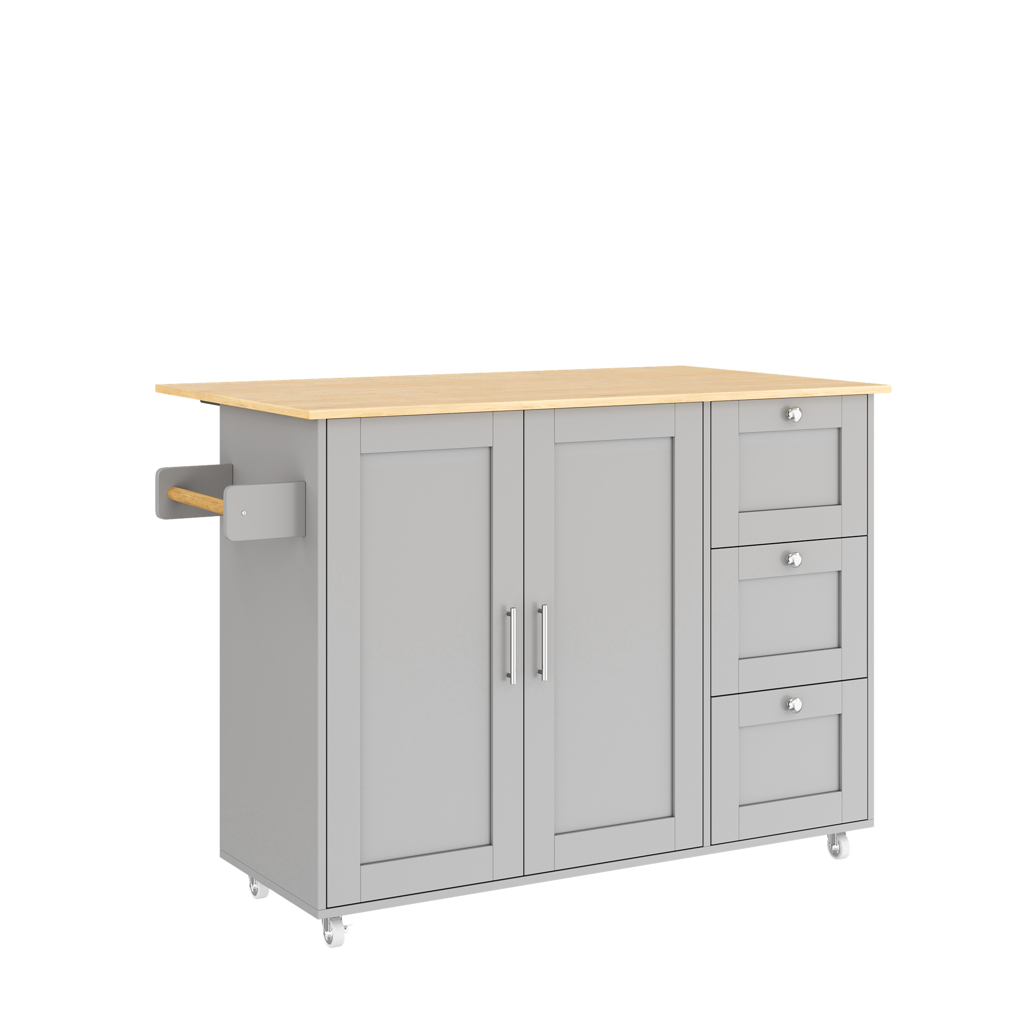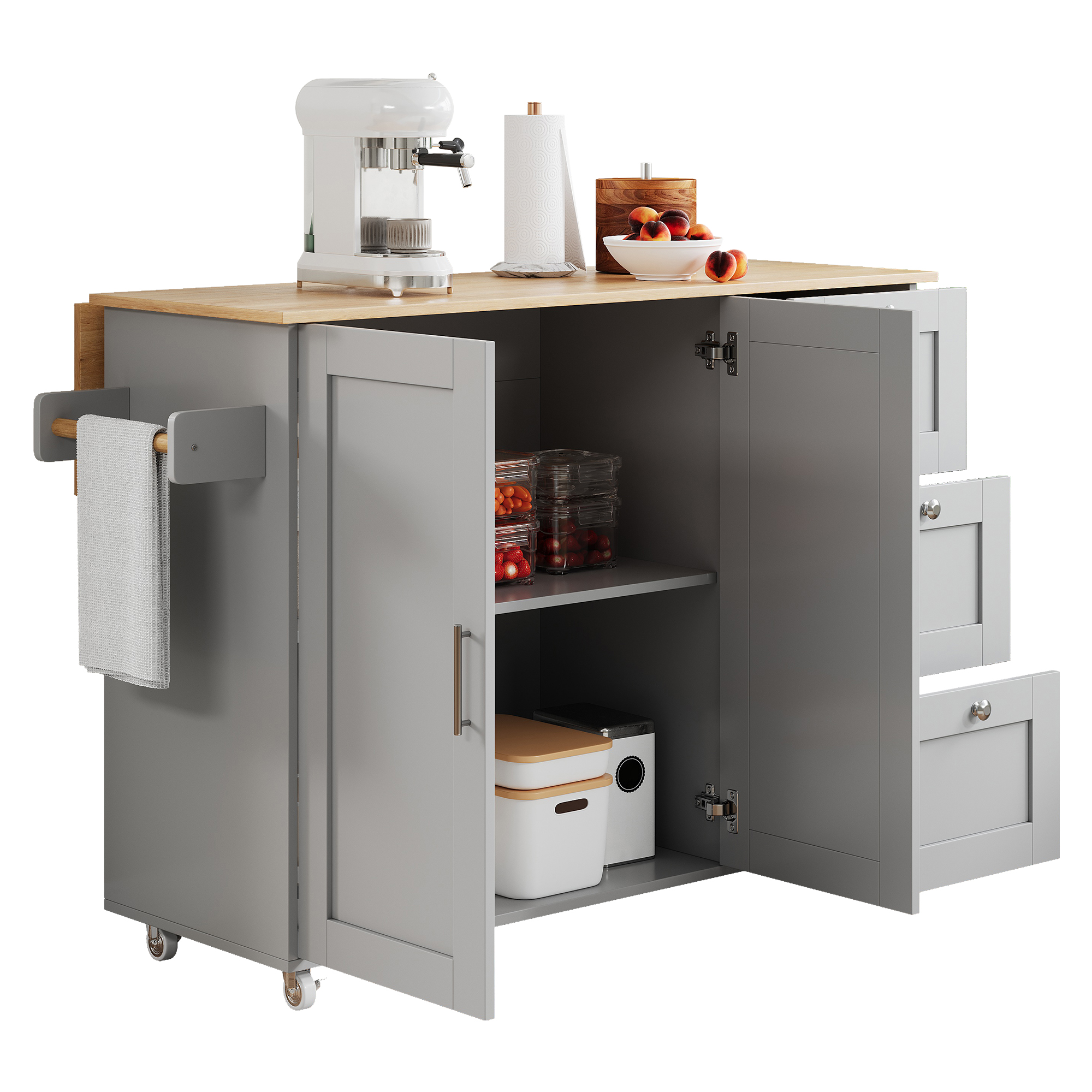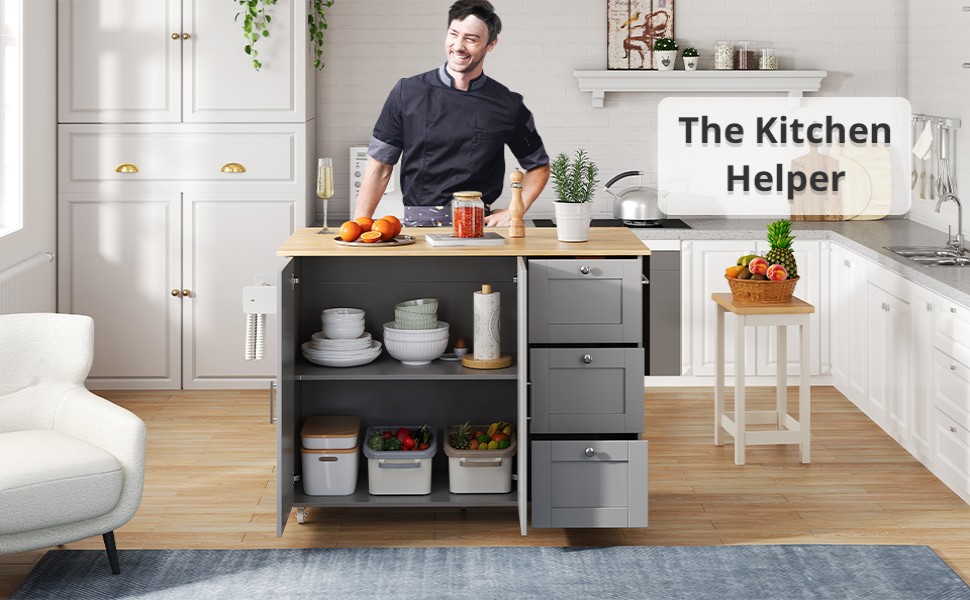 Product Name:Kitchen Island on Wheels, Rolling Storage Trolley with Foldable Tabletop, 3 Drawers, 2 Doors, Lockable Swivel Wheels, Towel Rack – Versatile for Dining Room & Living Room, 135*44(70)*90cm