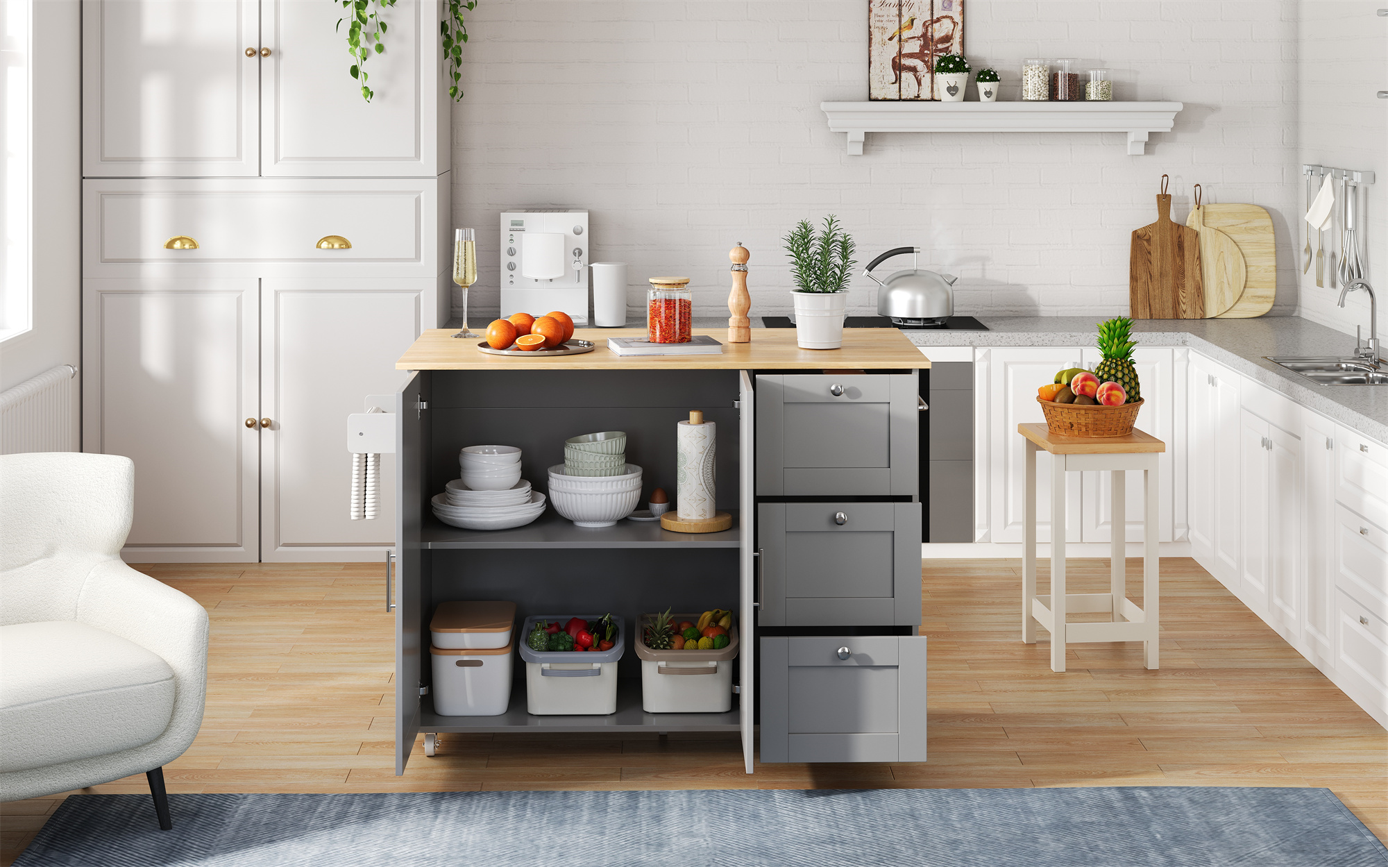 • Multi-purpose scenarios: Whether used as a kitchen island, additional dining room workstation, or mobile storage cart, this utility cart offers versatile support. With its solid structure and large capacity, it’s suitable for small kitchens or as extra workspace in larger homes.