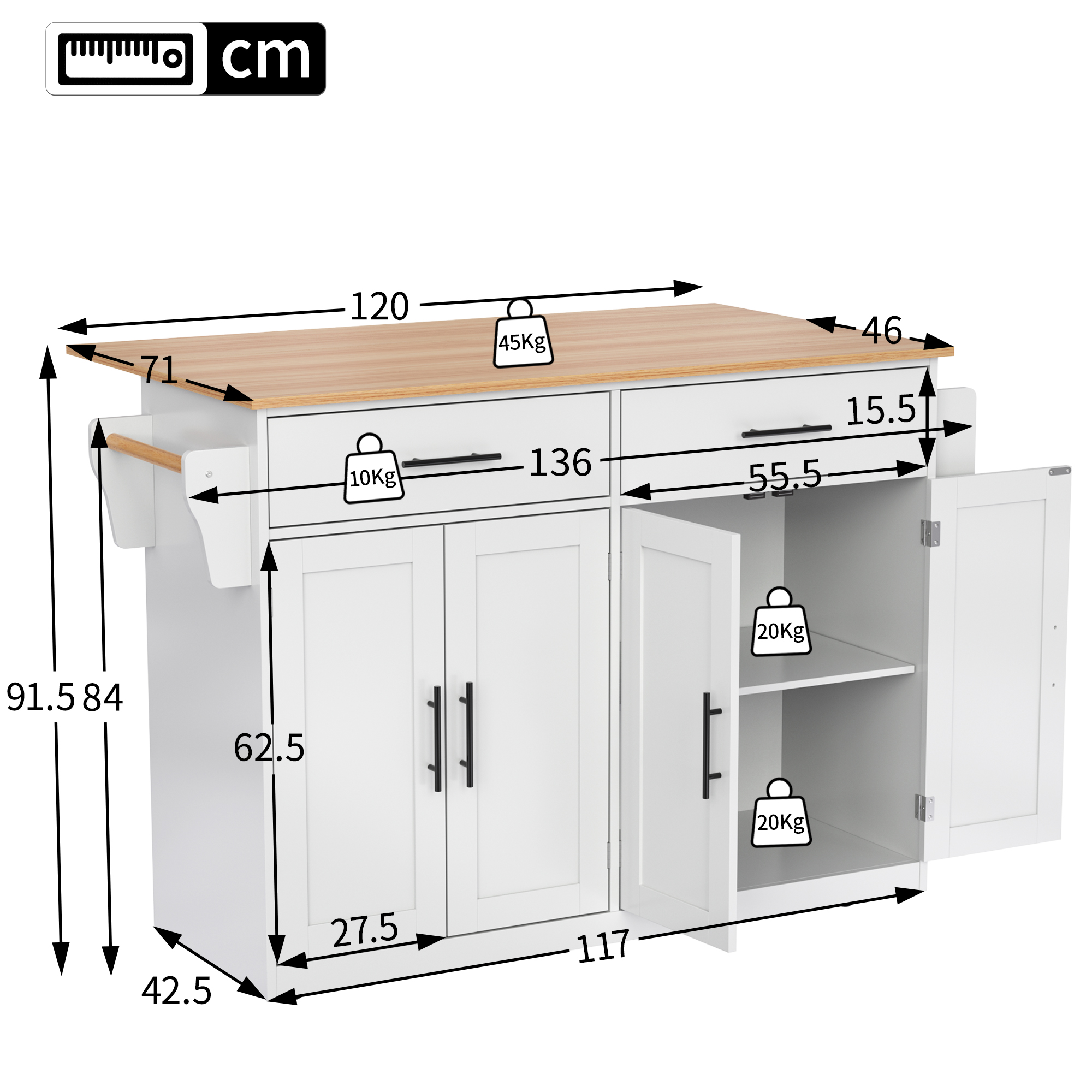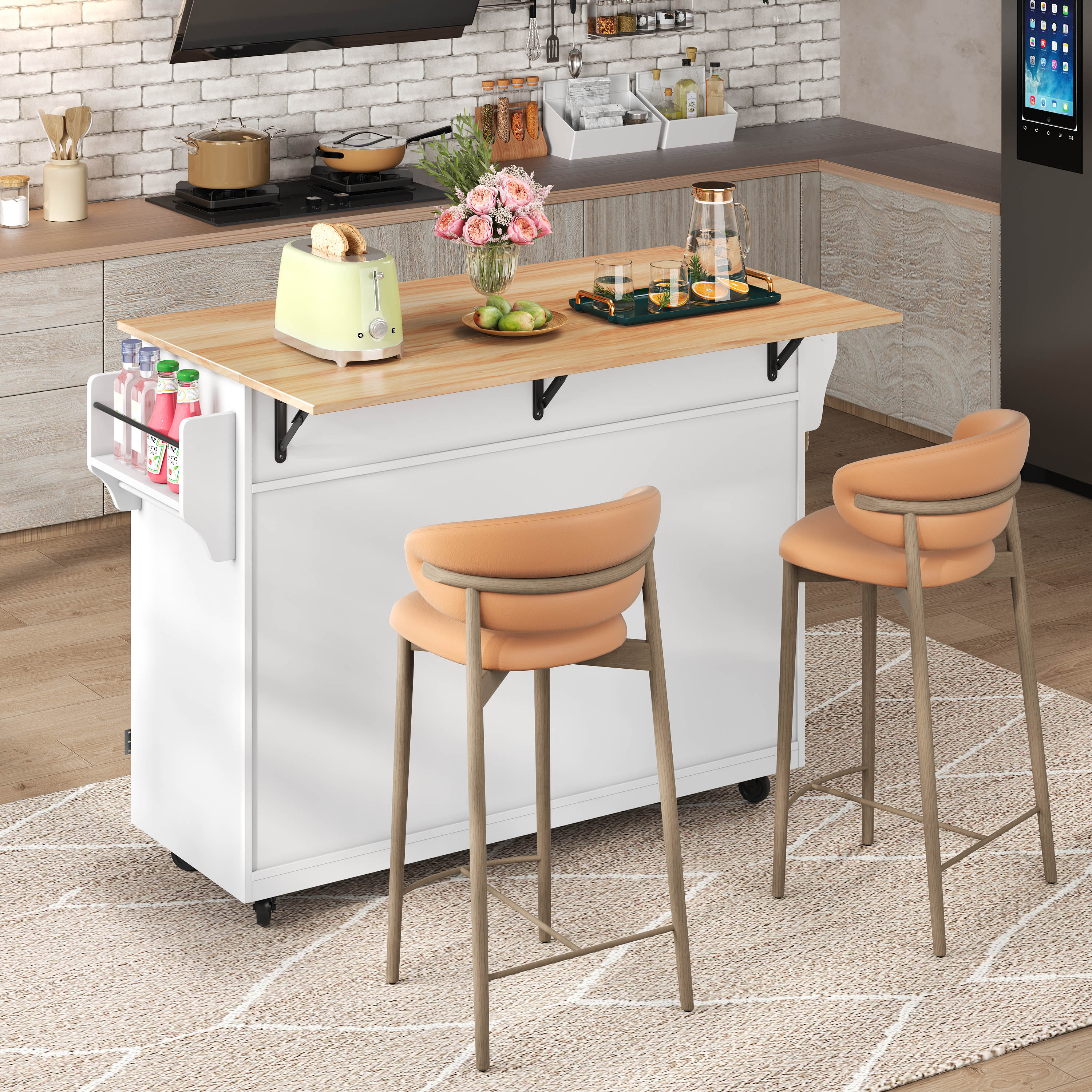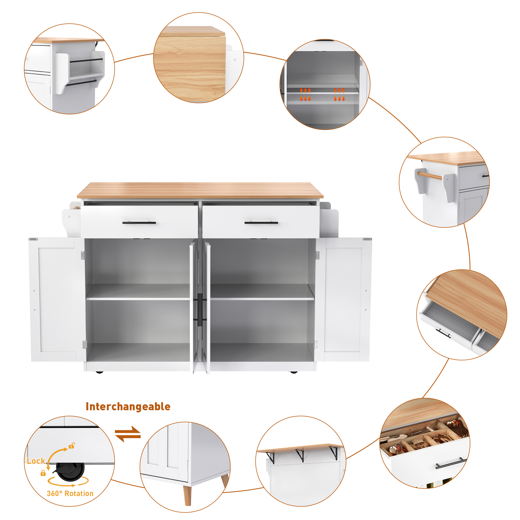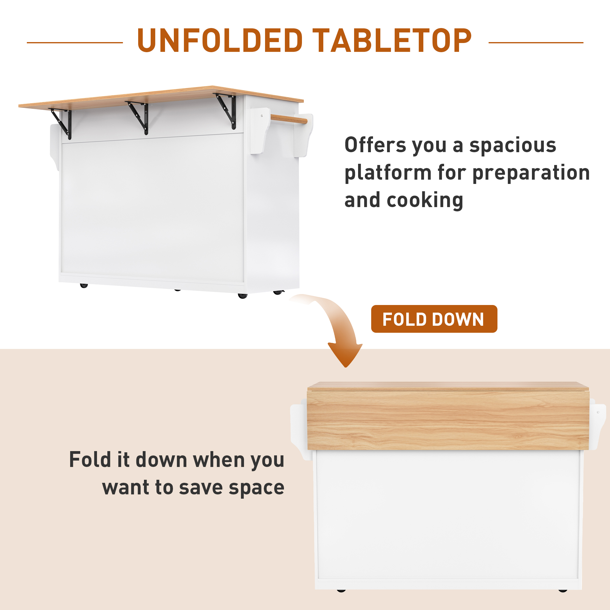 Product Name:Kitchen island on wheels,Dropleaf trolley, Serving cart with foldable tabletop,120x46(70)x91 cm, interchangeable wheels & solid wood feet, for dining room/living room