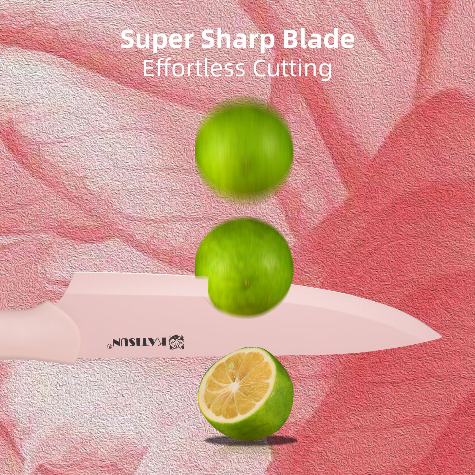 【Ergonomic Handles】The kitchen knives sets handles are made from durable and comfortable High quality plastic, featuring a striking pink color that will brighten up your kitchen. Say goodbye to hand fatigue and hello to efficient, stylish slicing