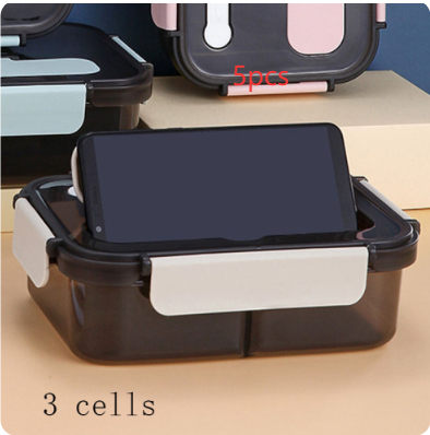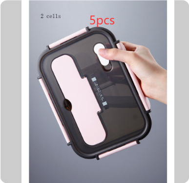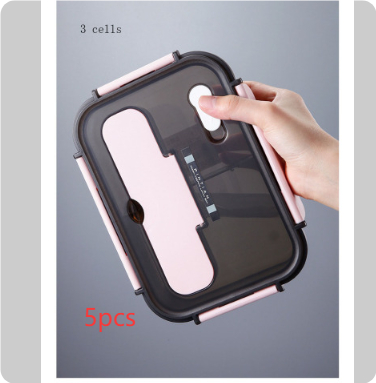 Style E: pink 1500ml (three grids) + plastic fork and spoon,