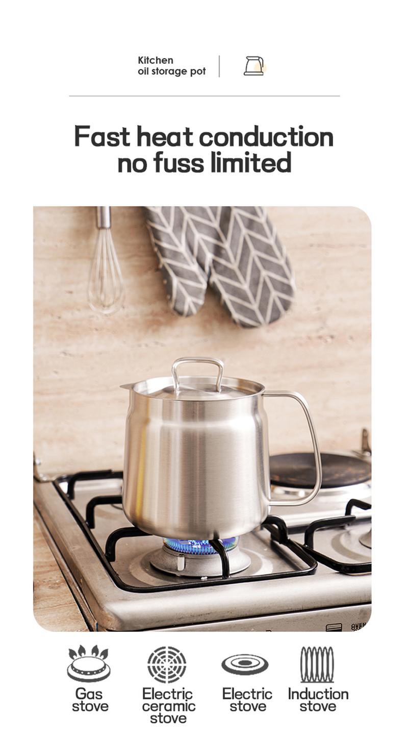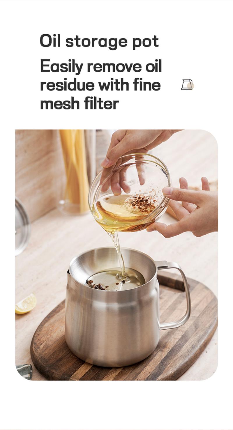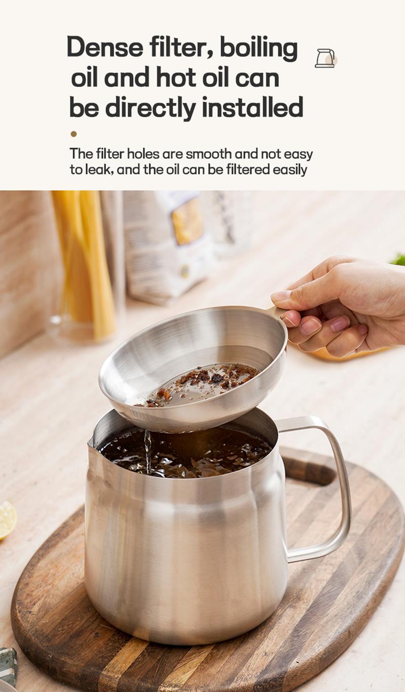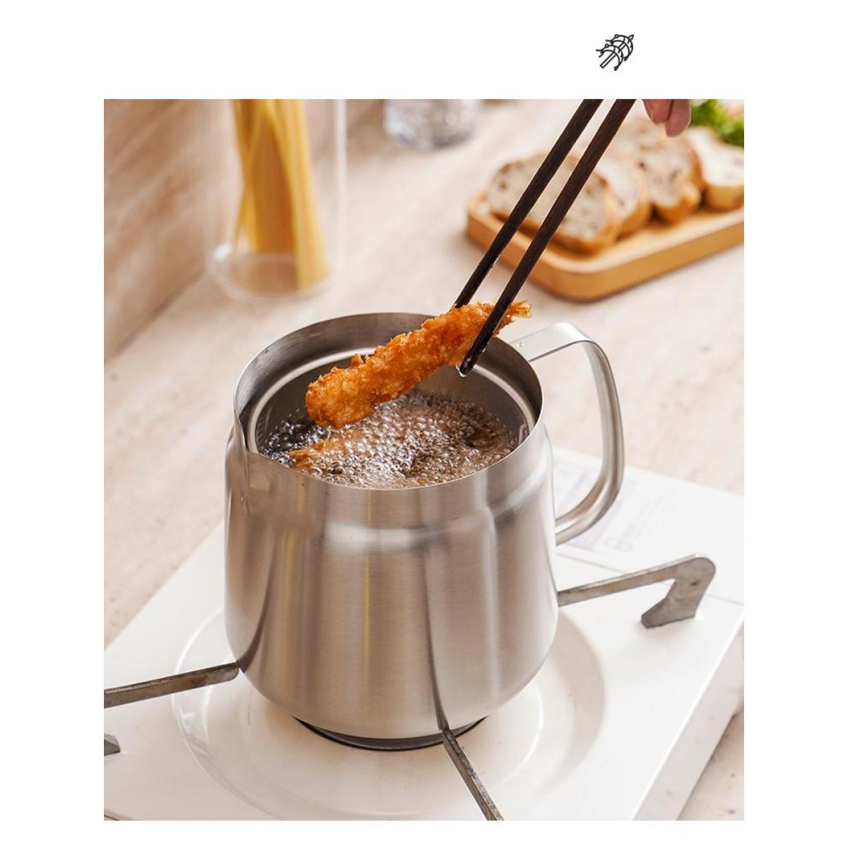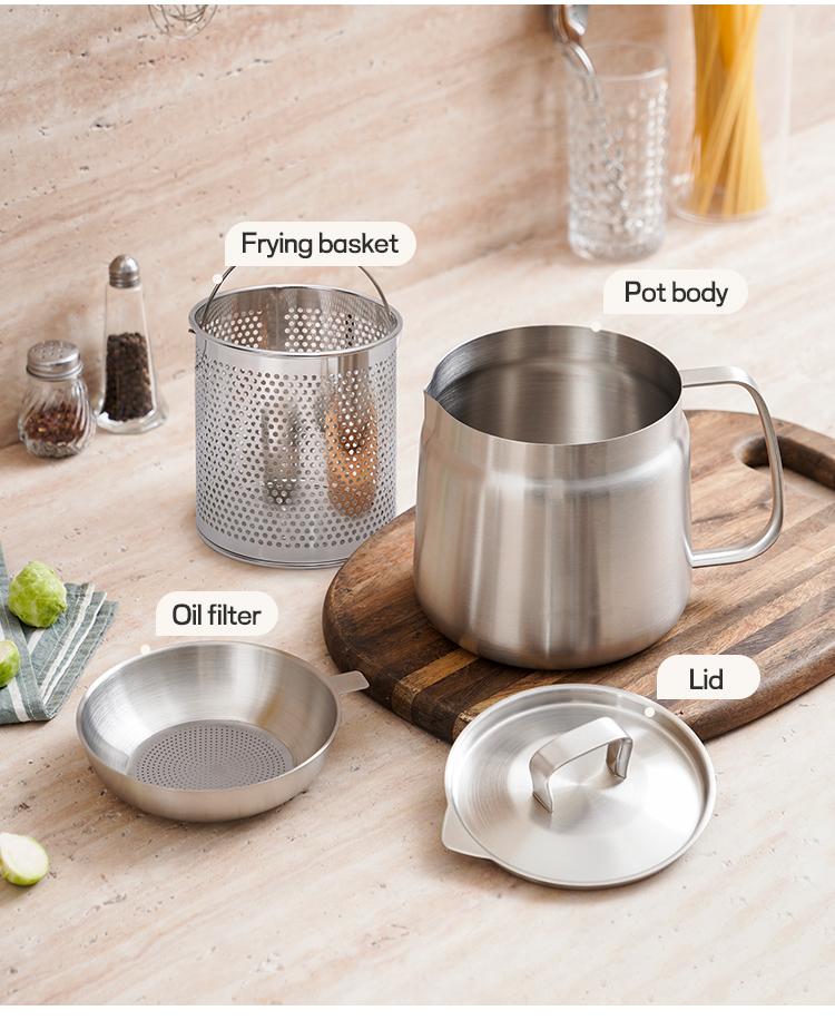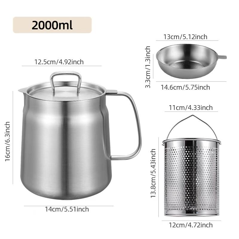 304 stainless steel oil filter pot Household kitchen with fine strainer with frying basket 67oz large capacity frying pot Durable with lid oil residue separation lard tank
