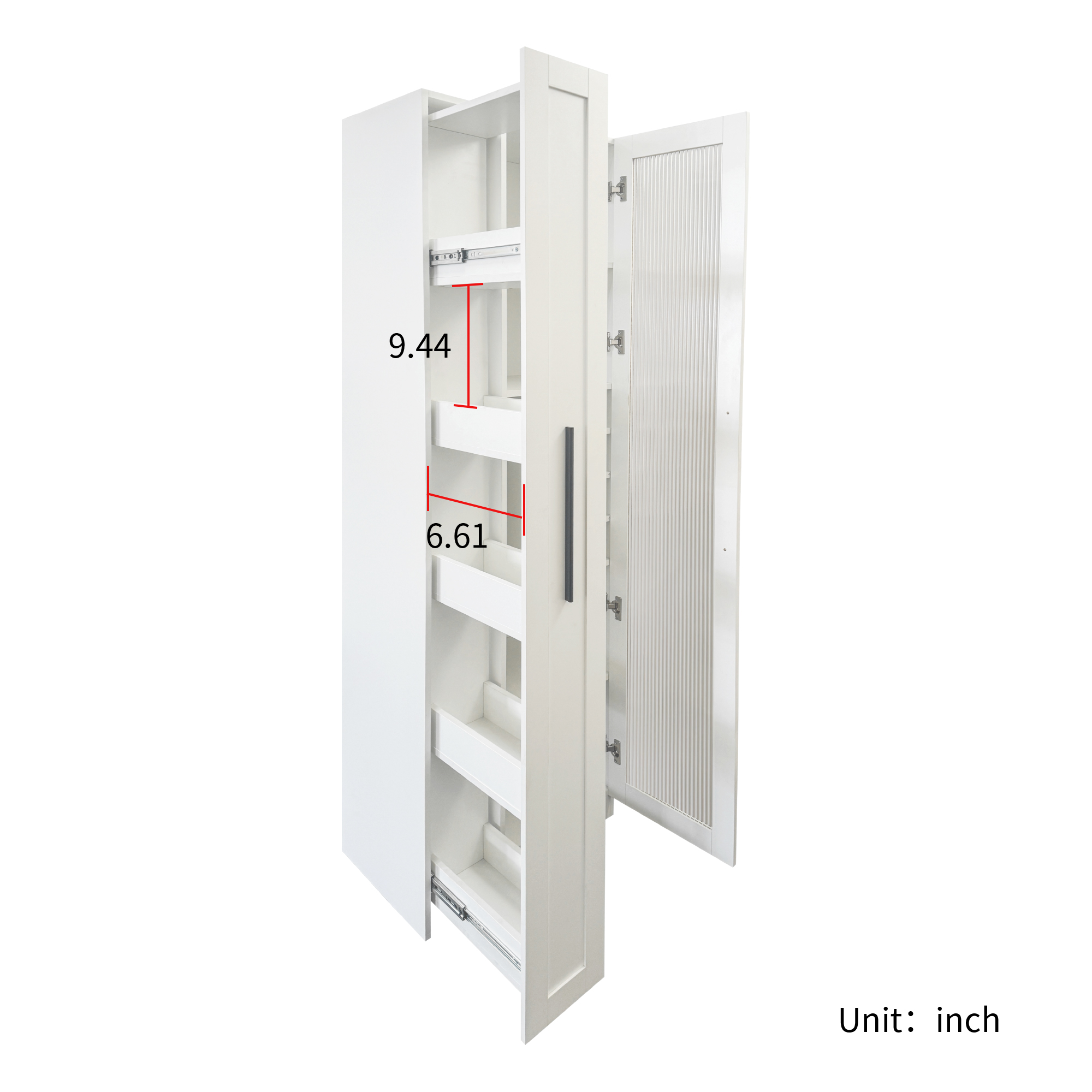 Our Expandable Pull-Out Cabinet Organizer features smooth-gliding,full-extension ball-bearing slides that bring even the most tucked-away items directly to you. Enjoy hassle-free access to everything you need, exactly when you need it. Left Multi-functional pull-out multi-tier storage shelf has 5 layers of storage in total. Can meet and facilitate any of your storage needs. Multi-Purpose Farmhouse Storage Cabinets:This Storage Cabinet can be used as kitchen cabinet,craft cabinet,food pantry cabinet and so on, Transform your kitchen cabinets from cluttered, hard-to-reach spaces into efficient, organized storage havens, perfect for cabinets, kitchen, pantry,living room,office,and more.It can be placed in any space in your home that needs storage to keep your home neat and tidy. You can used it as storage cabinet and wine cabinet in the living room to display crafts, books,wine,wine glass and decorations, Or just as bookcase in the office to store files and magazines... Take advanta