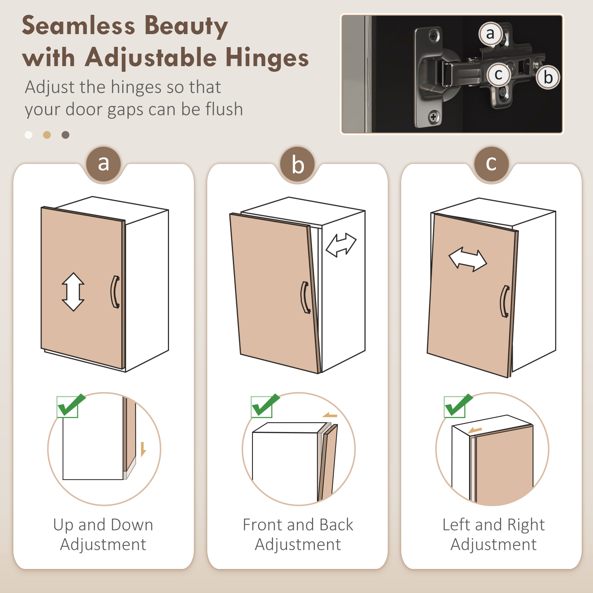 • - Seamless Modern Charm: Experience a visually pleasing look with our functional kitchen hutch, thanks to the adjustable door hinges. Its sleek modern design, complemented by minimalist metal handles, captivating glass doors, and a striking contrast counter board color, adds a touch of timeless elegance to your home.