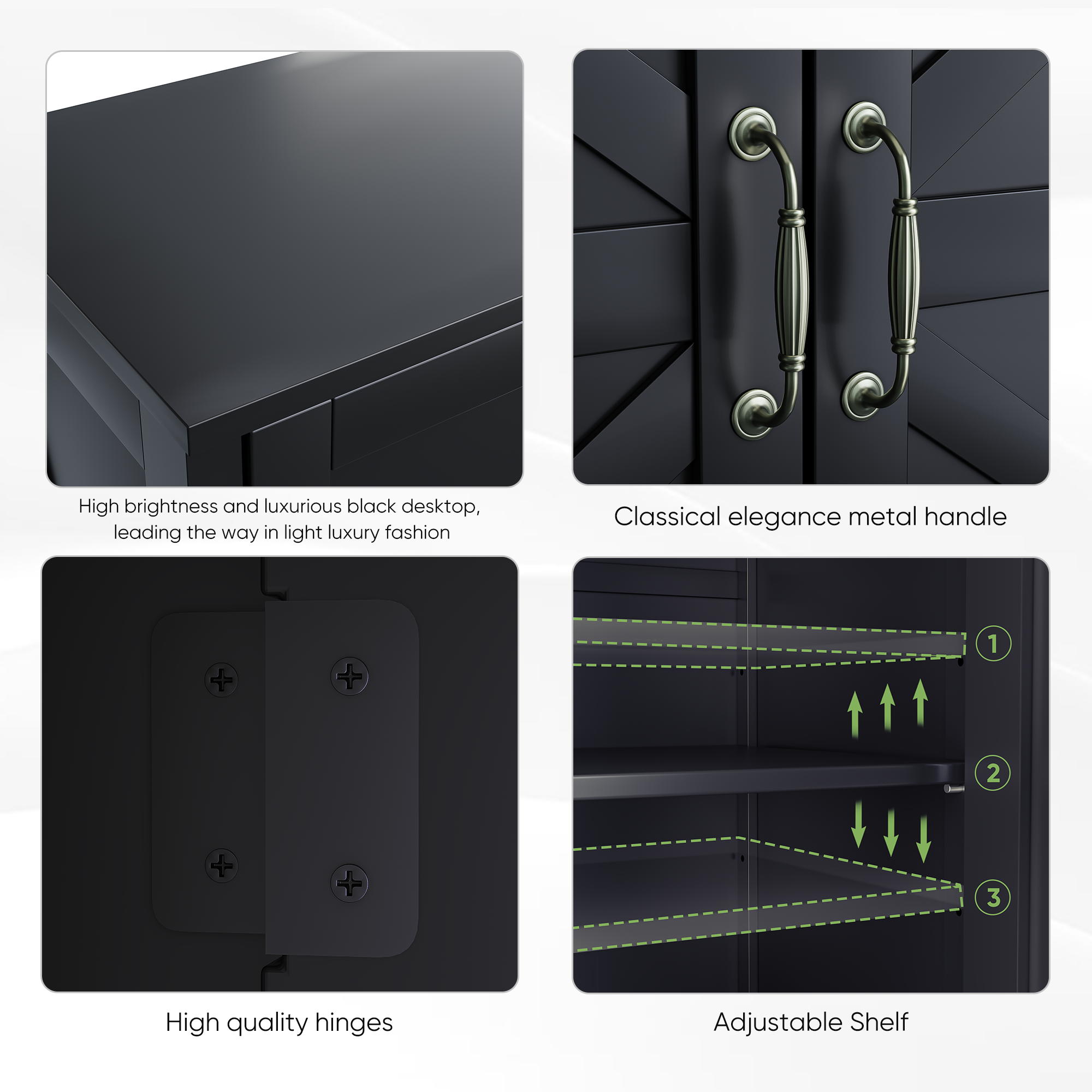• [Light Luxury blackTable top] The black table top of this coffee bar cabinets is made by painting process. The thickened tabletop and reinforced cabinet frame, enhances it thickness and stability. Its farmhouse yet stylish design complements modern, rustic, industrial, or vintage decor