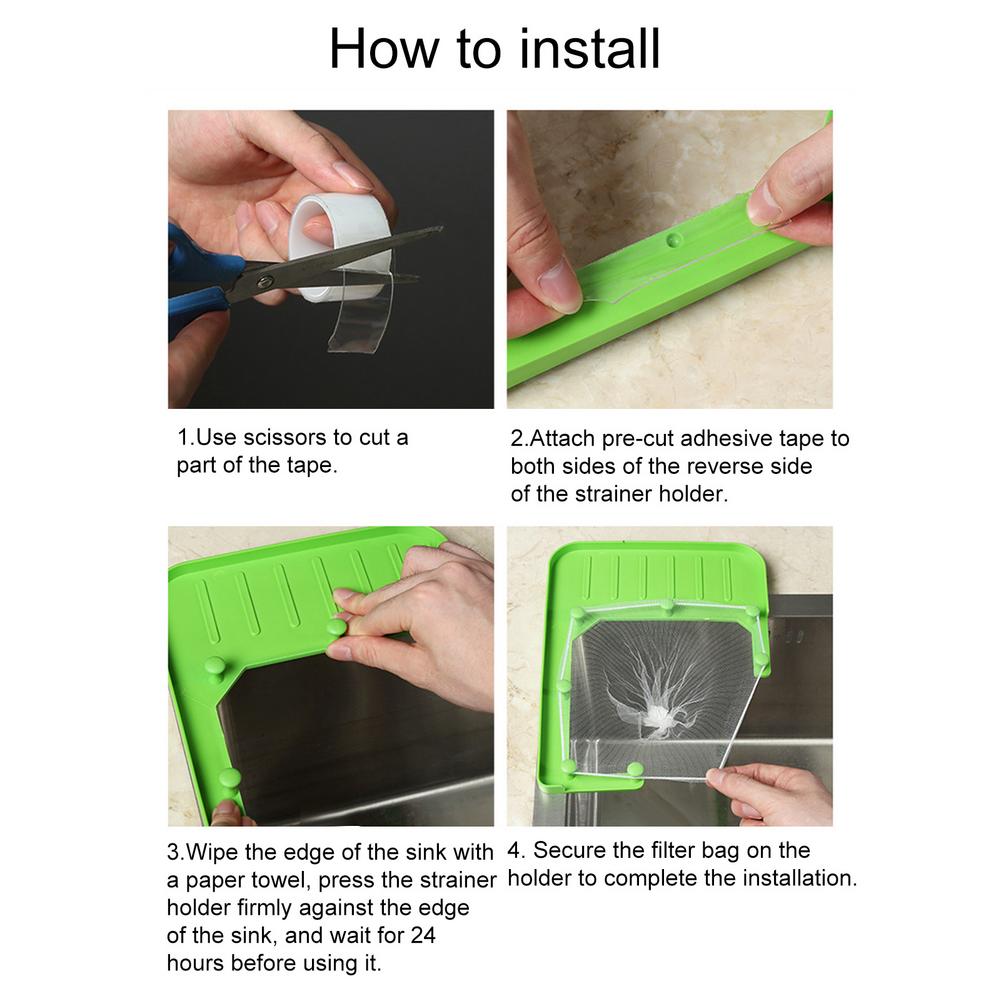 2.Attach pre-cut adhesive tape to both sides of the reverse side of the strainer holder.