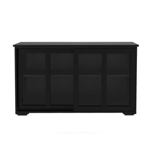 Large storage space: Two sliding doors make it easier to open and close doors. Two shelves inside expand your storage needs, and the middle shelf can be removed or heightened to suit your different storage needs. Spacious table top for displaying kitchen tools or as a coffee table.