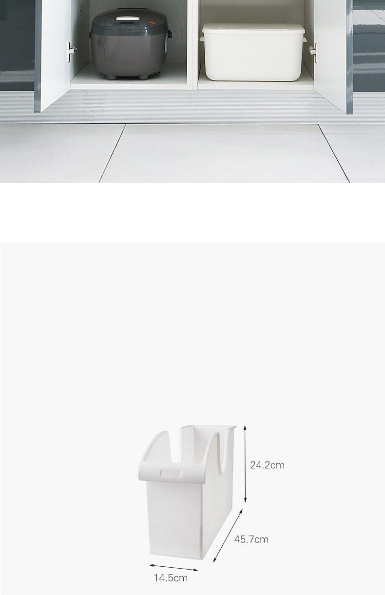 This storage box can be put on the kitchen cabinet neatly, it is a practical kitchen gadget for you.