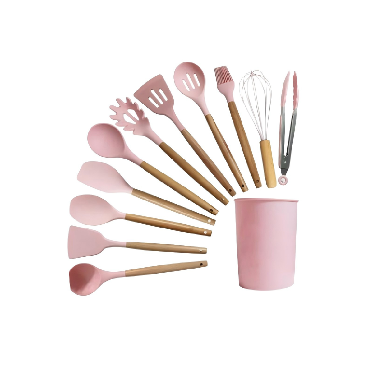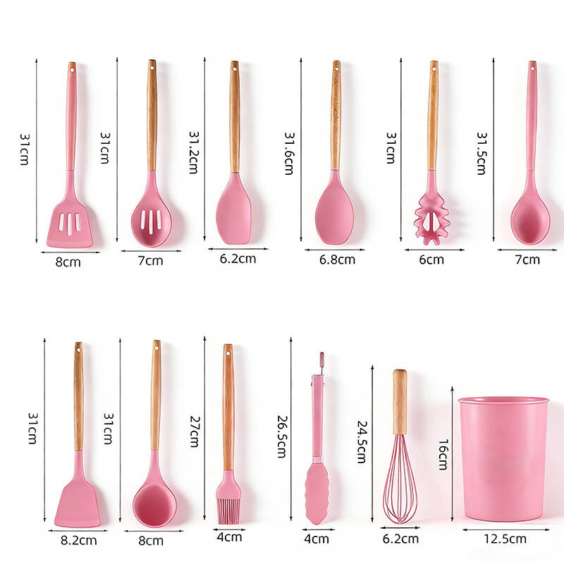 Kitchen Utensil Set 12 PCS Silicone Cooking Tools With Wooden Handle, Cooking Utensils Set Heat Resistant & Non-Scratch For Nonstick Pans, Utensil Set Includes Spatula, Spoon & Tongs, Kitchen Accessor