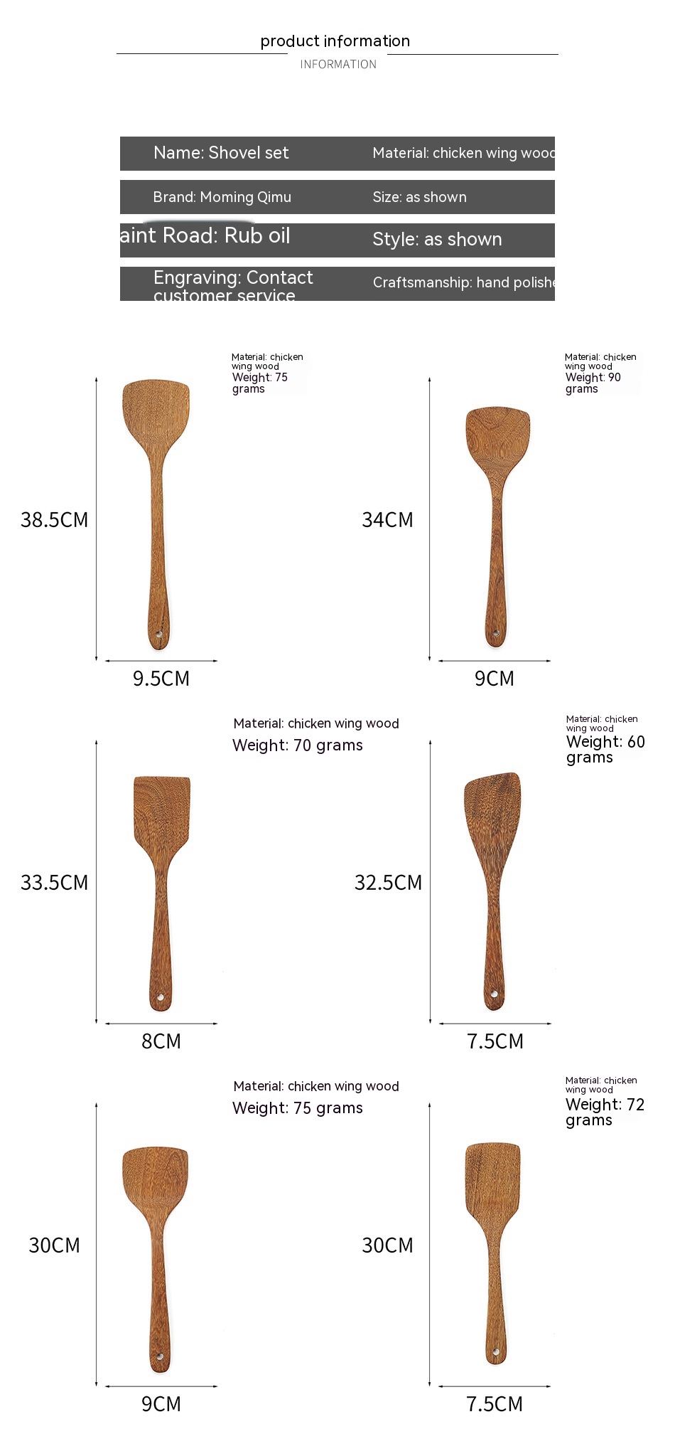 Size: rice spoon, oblique shovel, short handle scraper, long handle scraper
