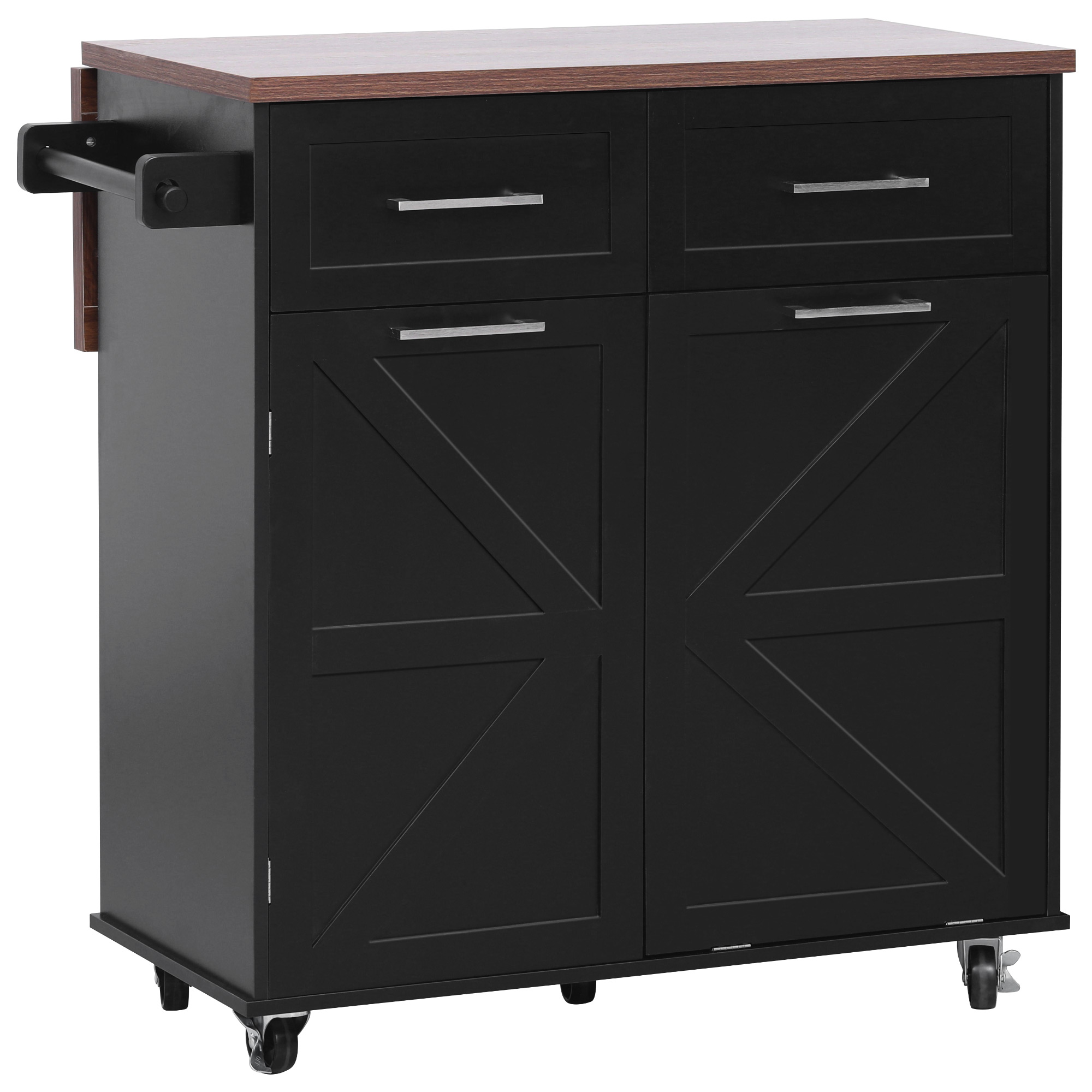 Product Name:K&K 47.2" Farmhouse Kitchen Island with Drop Leaf, Kitchen Storage Island with Removable Side Racks, Two Drawers, Rolling Kitchen Cart on Wheels with Towel Rack, for Home, Kitchen, Dining Room, Black
