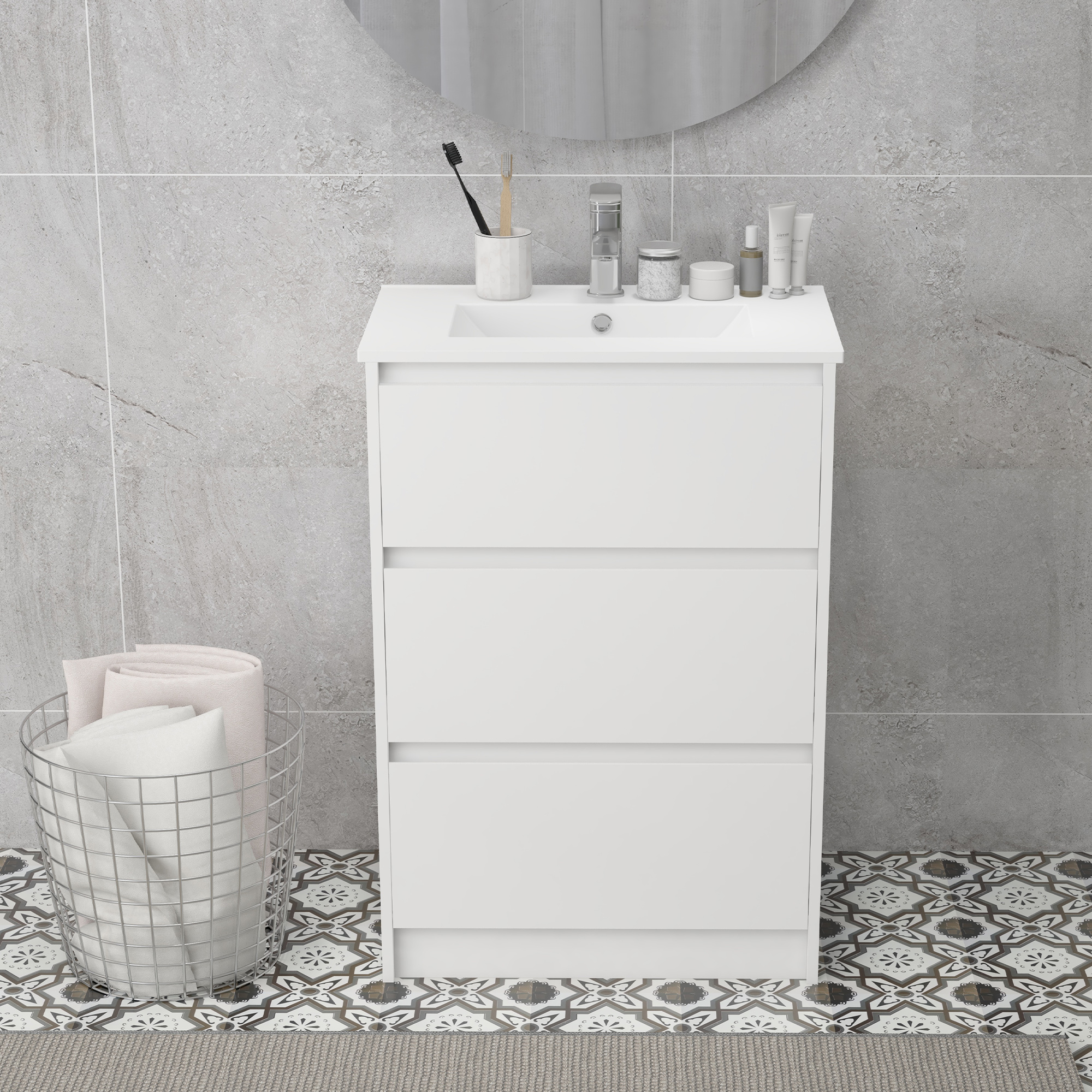 Blending two bathroom essentials together, look to this kleankin freestanding sink vanity unit. It merges together a sink basin and tap with two drawer below - a great piece to bring into smaller bathroom spaces. The two drawers are great for keeping essentials like cosmetics and toiletries stored. Made from sturdy particle board so this sink and vanity unit is suitable for everyday use, it comes in a fresh white colour with a high gloss polish for a modern finishing touch.