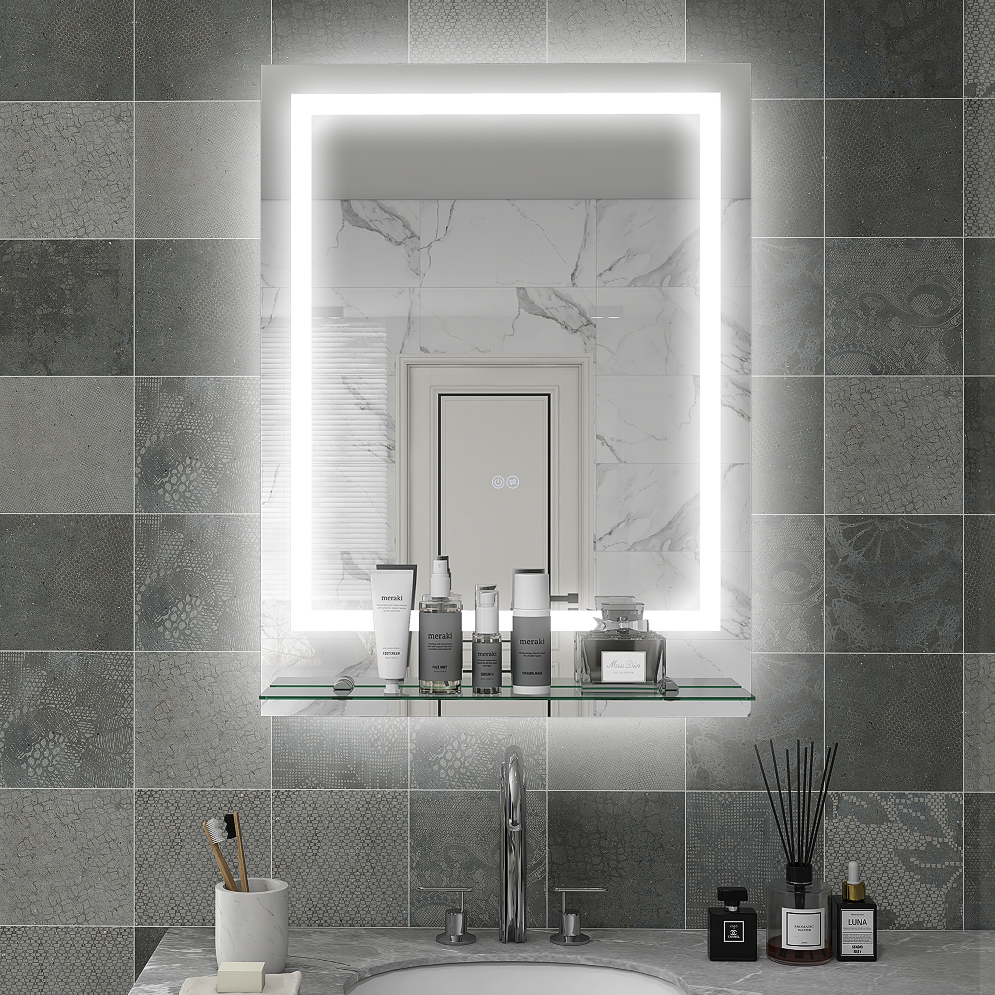 Style and functionality, rolled into one. This kleankin illuminated bathroom mirror is a spot you can see yourself and get ready, anytime. An outer LED lights up the whole of the mirror - change between warm white, white and cool white: use throughout different times of the day. The touch control allows you to adjust the settings easily. Comes with anti-fog function: glass will not mist in humid environments.
