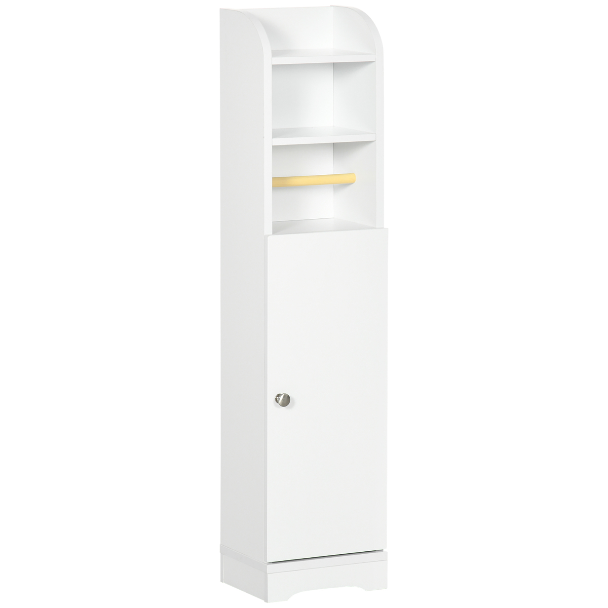 All items in a go-to spot, with this kleankin bathroom cabinet. It has two upper shelves, a toilet roll holder and bottom two-tier cupboard; the three-level adjustable shelf in the cupboard allows you to fit smaller and larger items as required. Made from particle board for sturdiness, crafted in a tall and narrow design to fit into smaller spaces. Complete with an anti-tipping strap to safely secure to a wall.