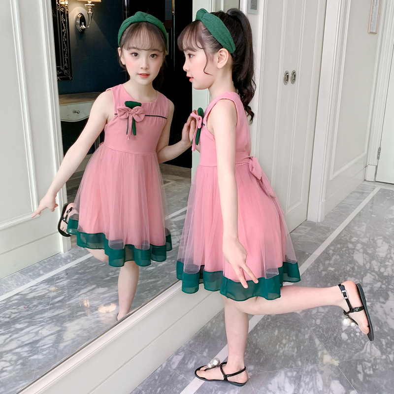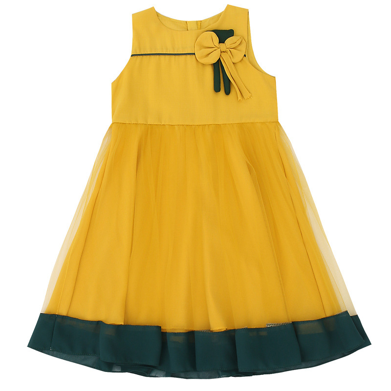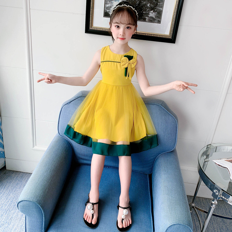 Color: Yellow fantasy gauze dress, pink fantasy gauze skirt, sleeveless striped skirt