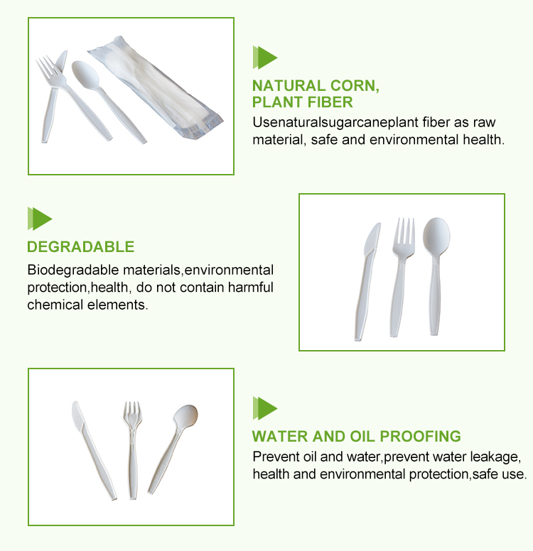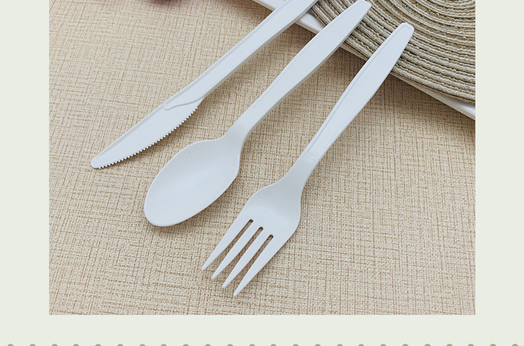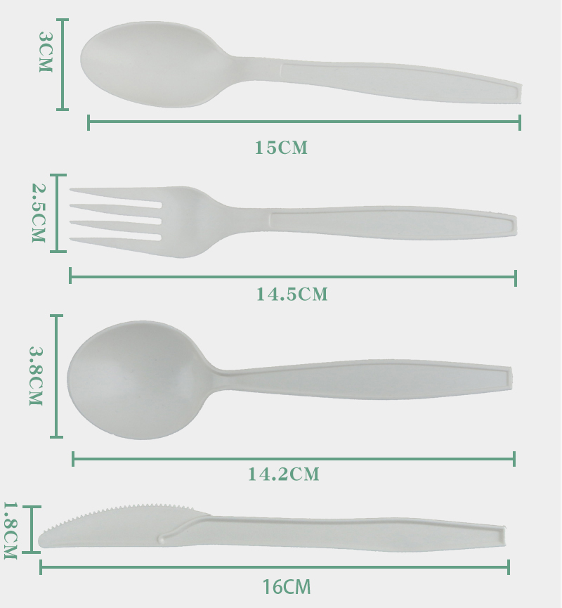 Product name: Disposable degradable tableware plastic compostable tableware setMaterial: Corn starchSize: custom sizeCutlery type: Cutlery set