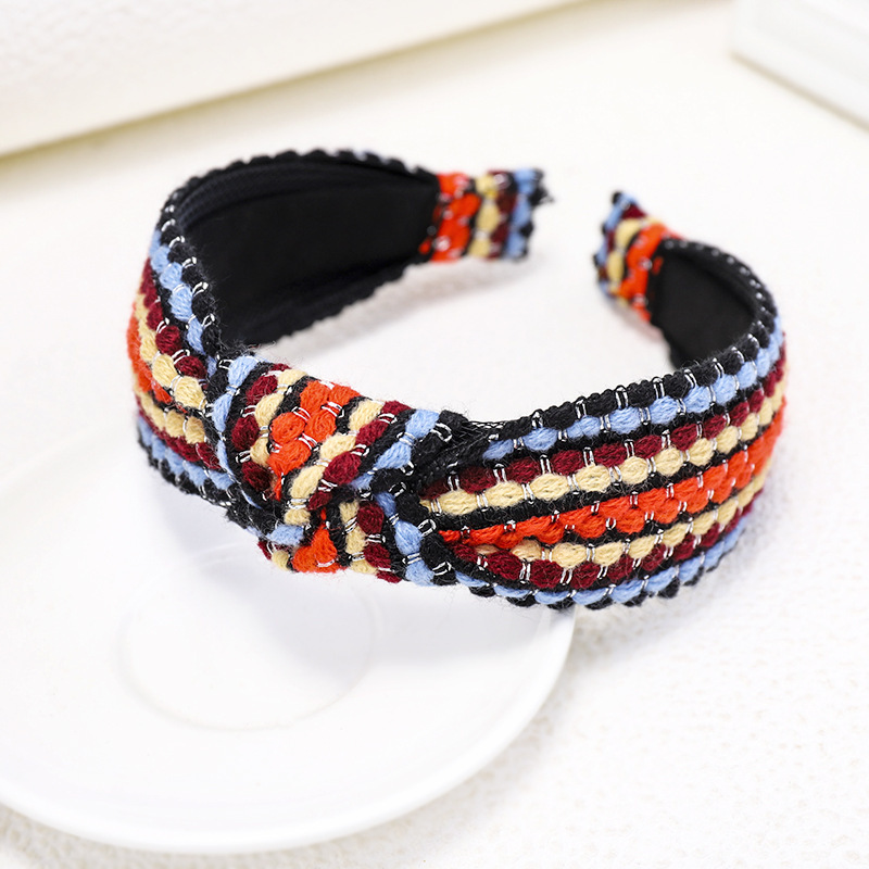 Color: dark red blue wool color matching striped headband, white dark green wool color matching striped headband, beige brown wool color matching striped headband, orange sky blue wool color matching striped headband