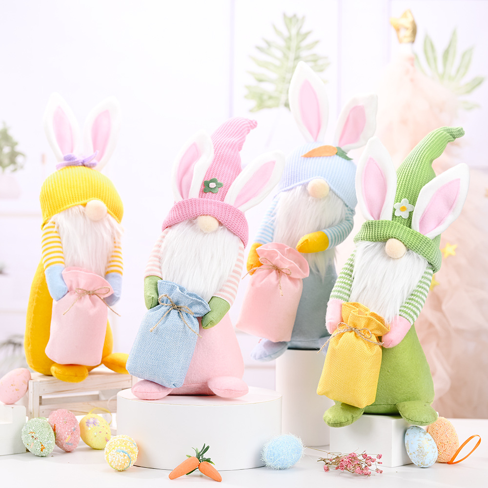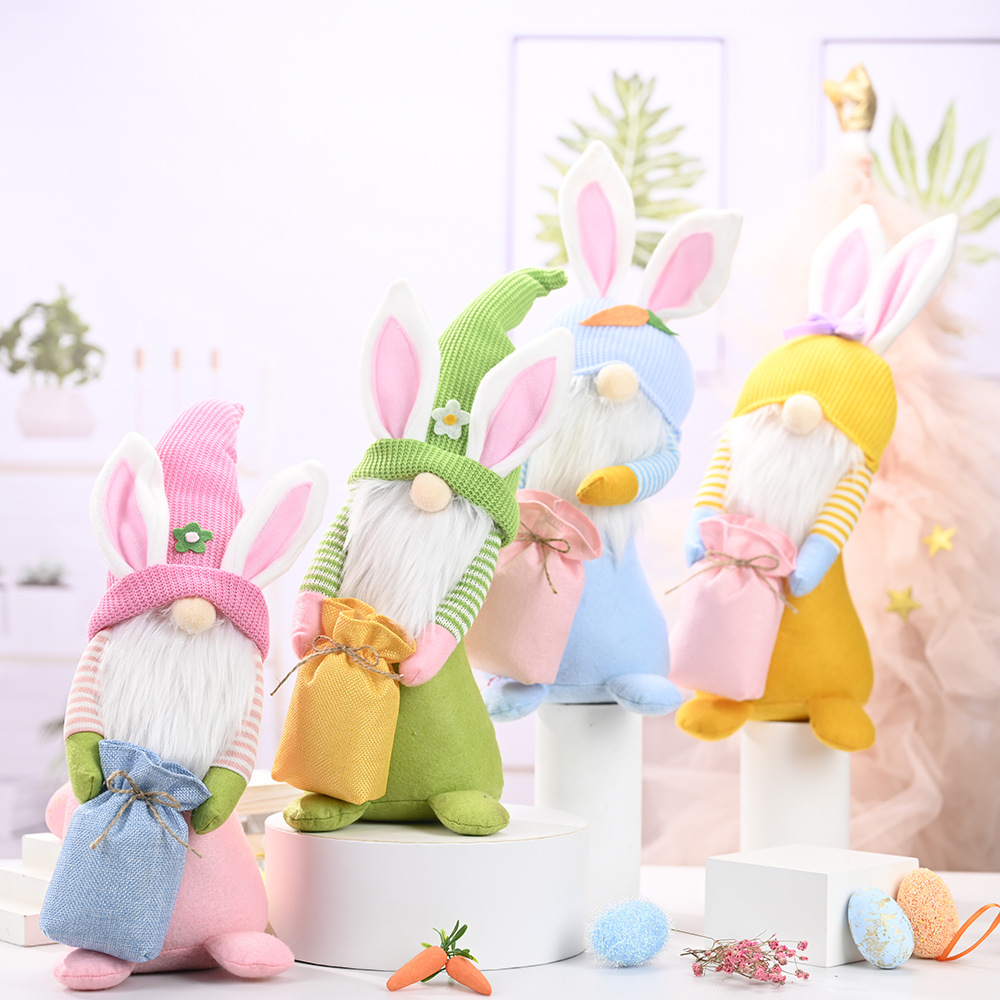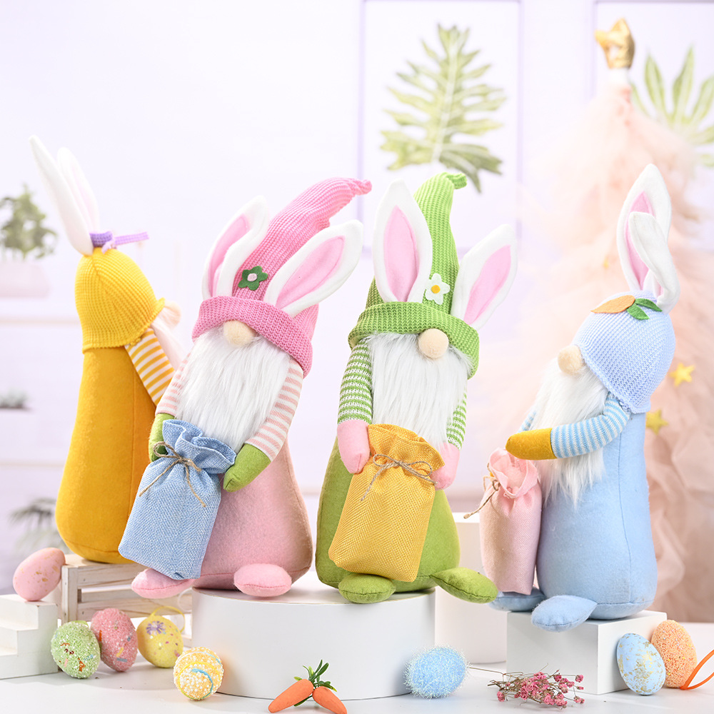 Colors: Easter Crooked Neck Bunny action figure yellow, Easter Crooked Neck bunny action figure blue, Easter Crooked Neck bunny action figure pink, Easter Crooked Neck bunny action figure green