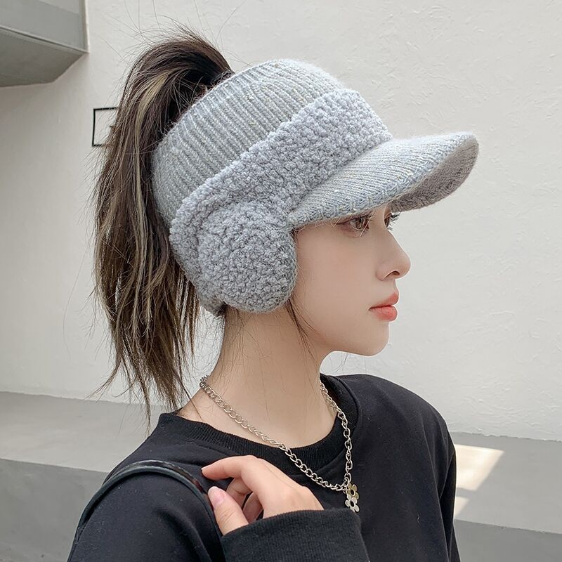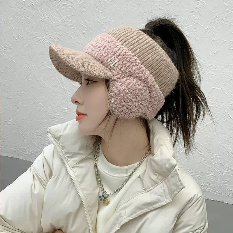 Color: H letter ear protection empty top - black,H letter ear protection empty top - gray,H letter ear protection empty top - pink,H letter ear protection empty top - beige,H letter ear protection empty top - white,H letter ear protection empty top - Khaki