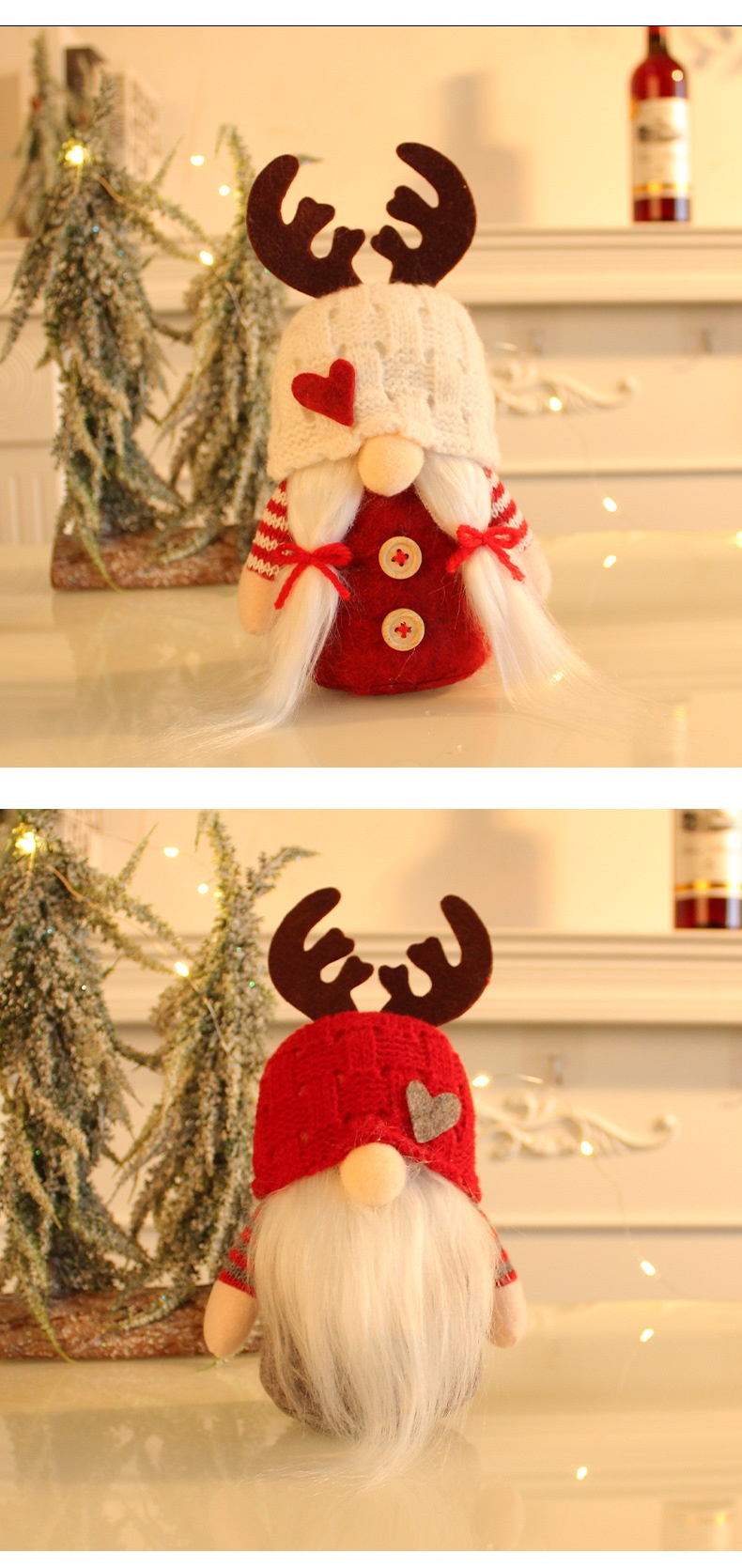 Knitted Hat Antlers Doll Rudolf Faceless Table Decoration