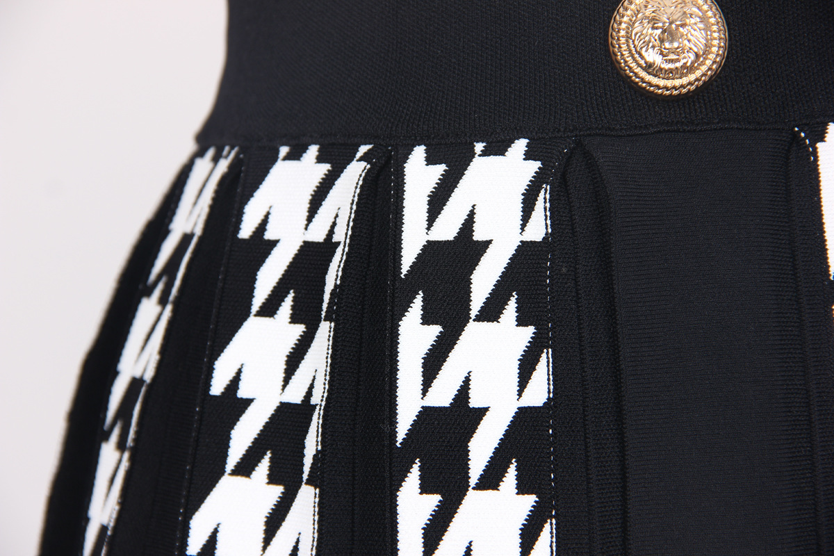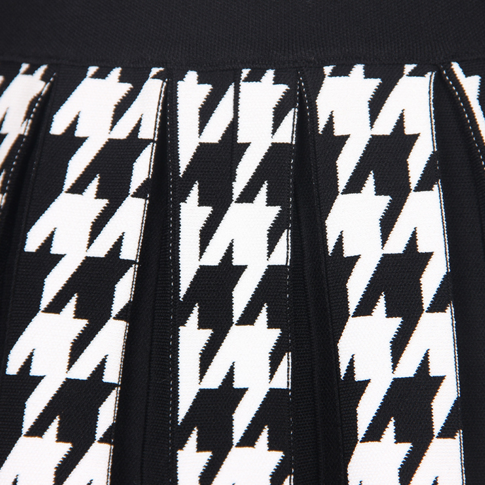 Knitted Houndstooth Little Short Dress