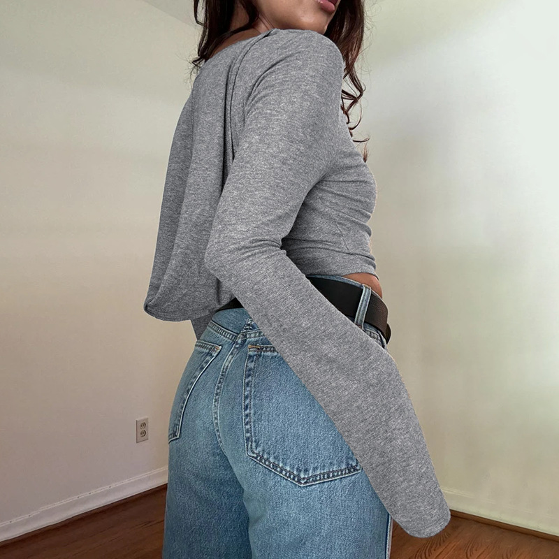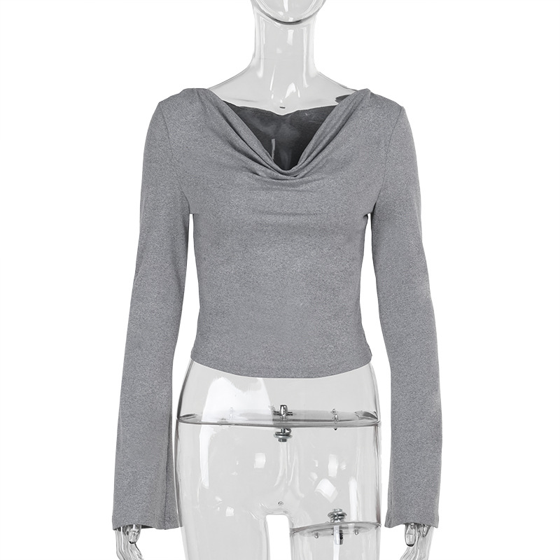 Knitted Pocket With Hat Autumn Fashion Casual Pure Color All-matching Long Sleeve T-shirt