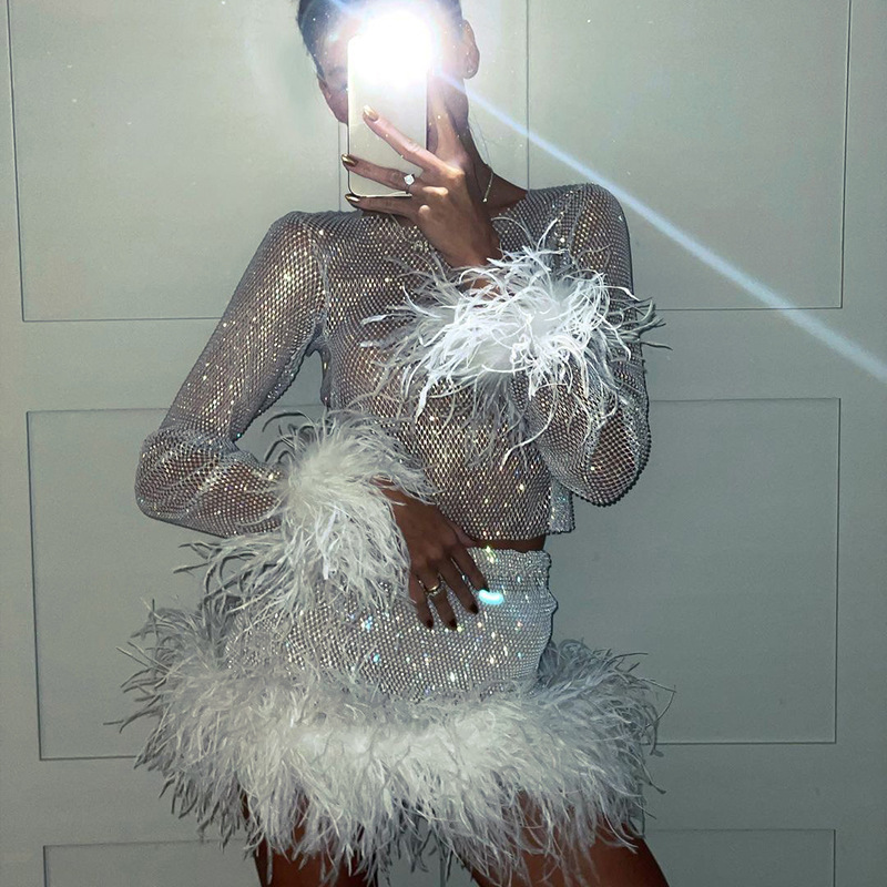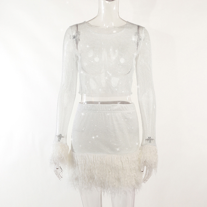 Knitted Round Neck Furry Long-sleeved Top Skirt Winter Skirt