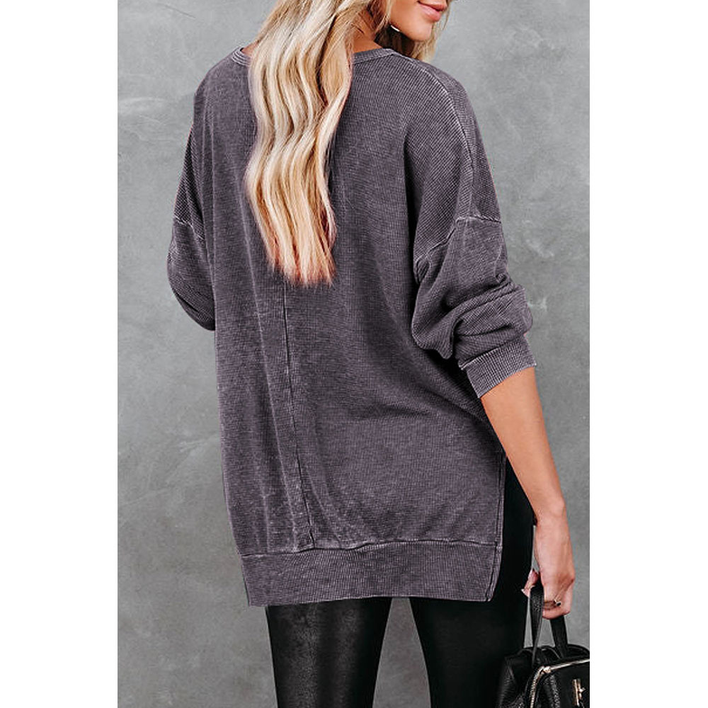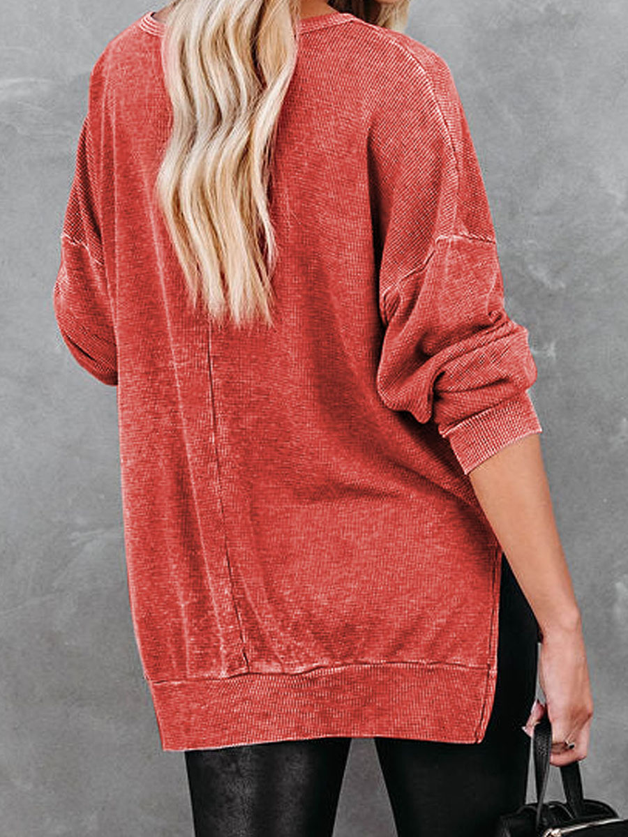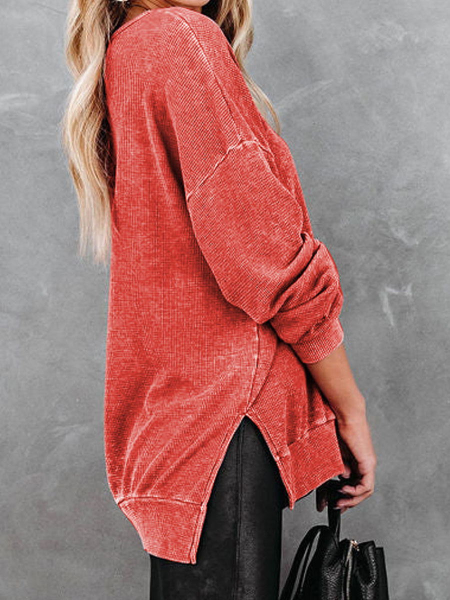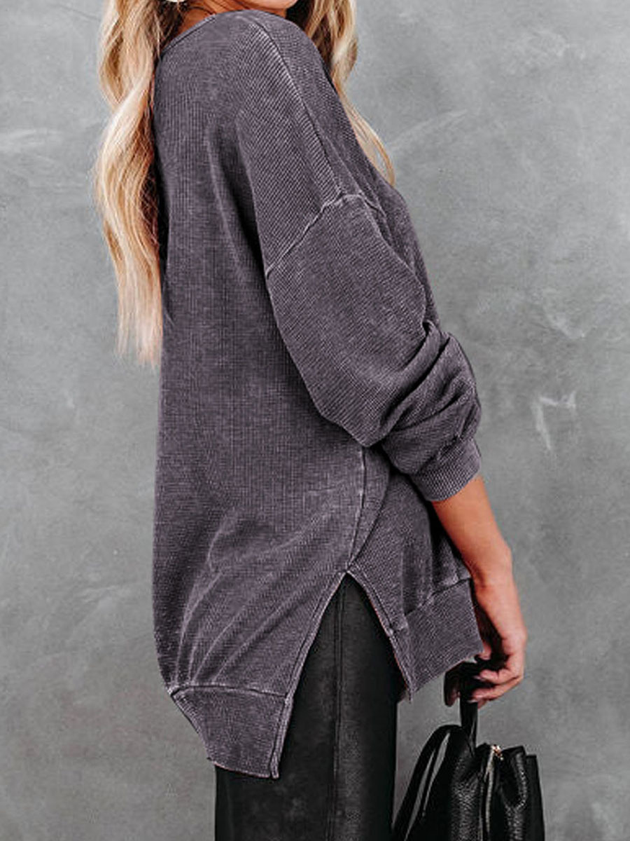 Knitted Side Slit Pullover Women Loose All-matching Long Sleeve Top