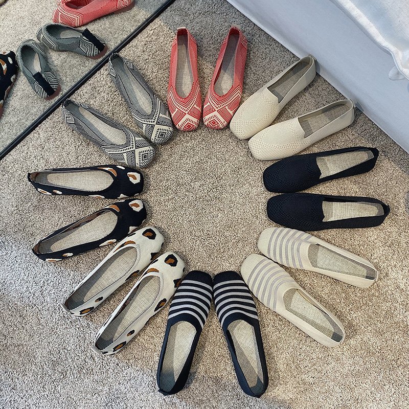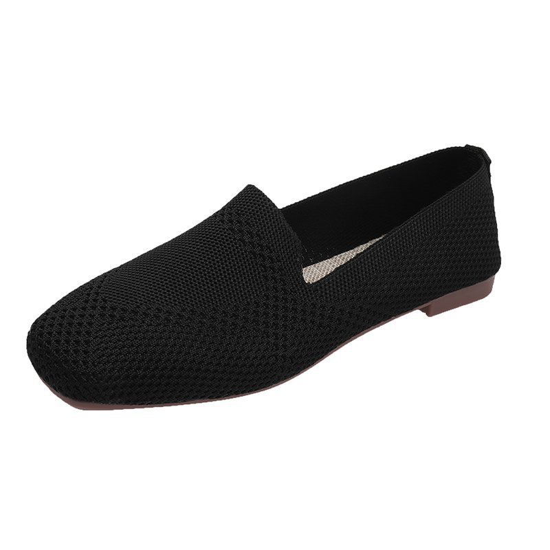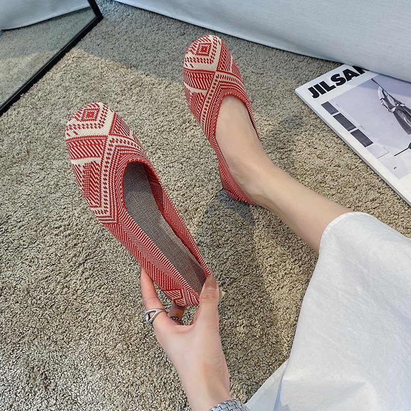 Knitted Soft-soled Beanie Shoes Flying Knit Woven Women's Flat Shallow Mouth
