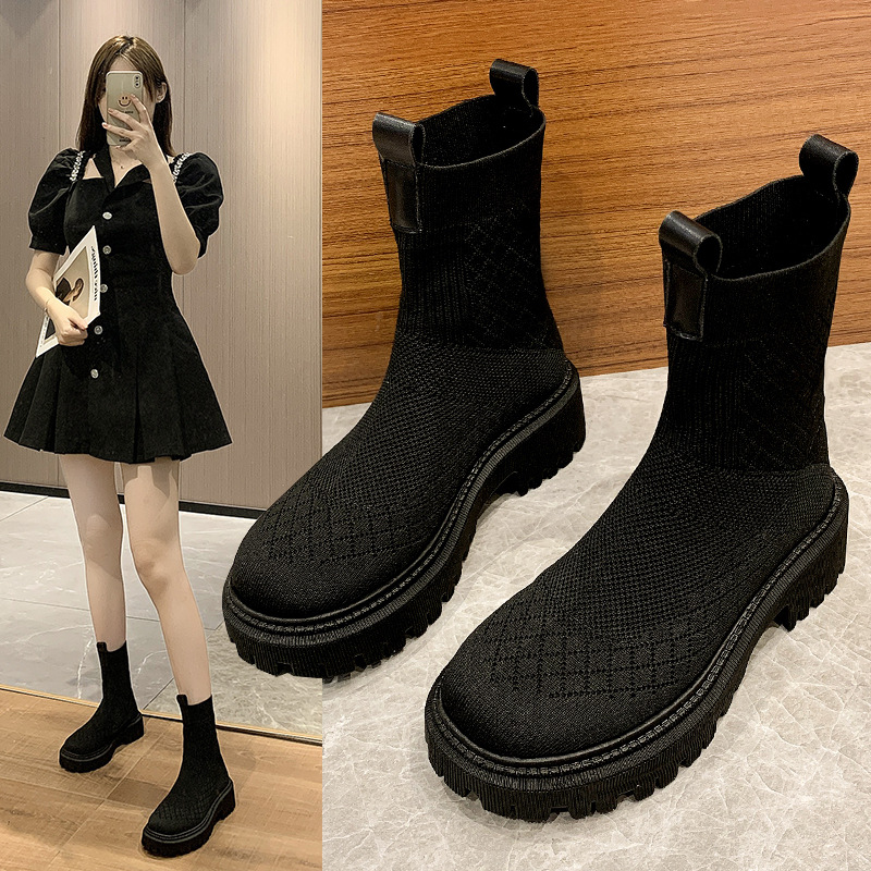Knitted Stretch Socks Mid-tube Boots Thick-soled Sock Boots