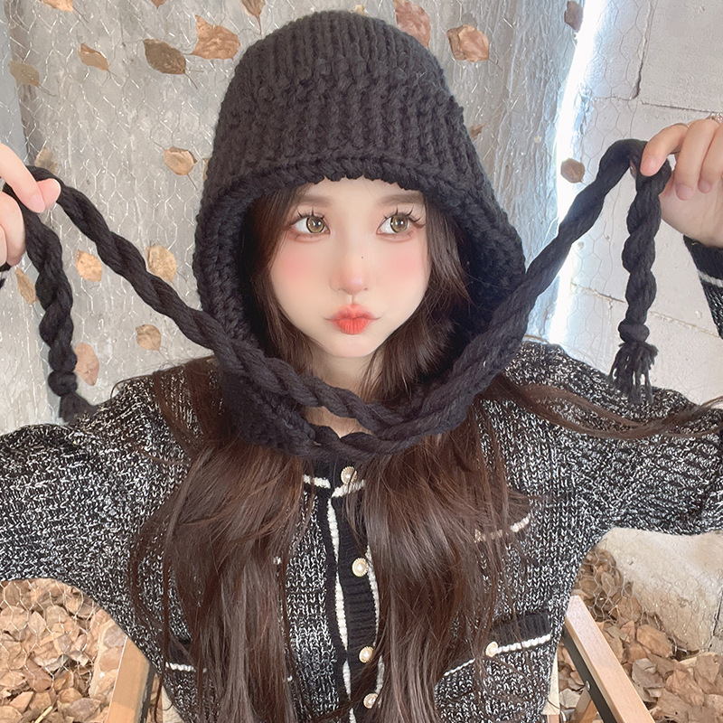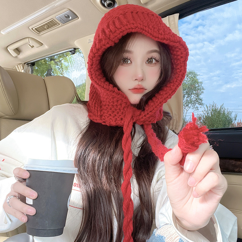 Color: C1519 knitted lace-up Little Red Riding Hood red, C1519 knitted lace-up Little Red Riding Hood beige, C1519 knitted lace-up Little Red Riding Hood Black
