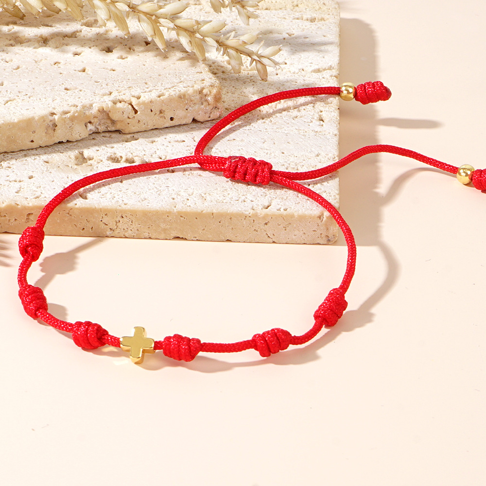 Knotted Copper Cross Bracelet Hand-woven Adjustable