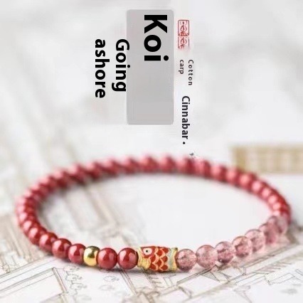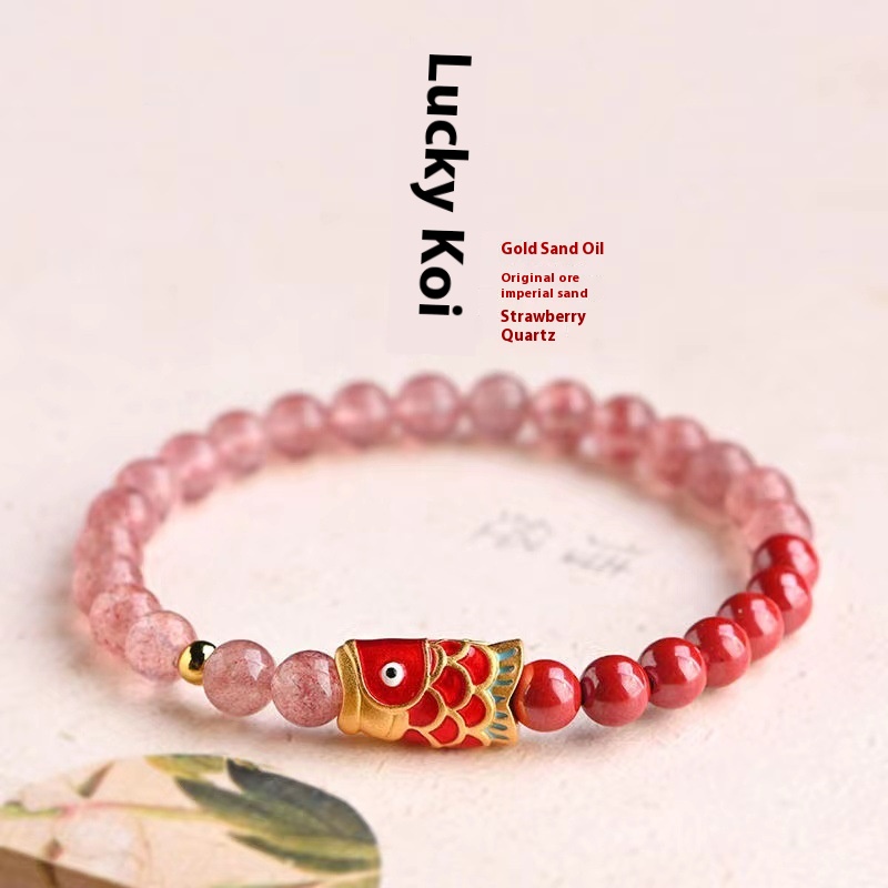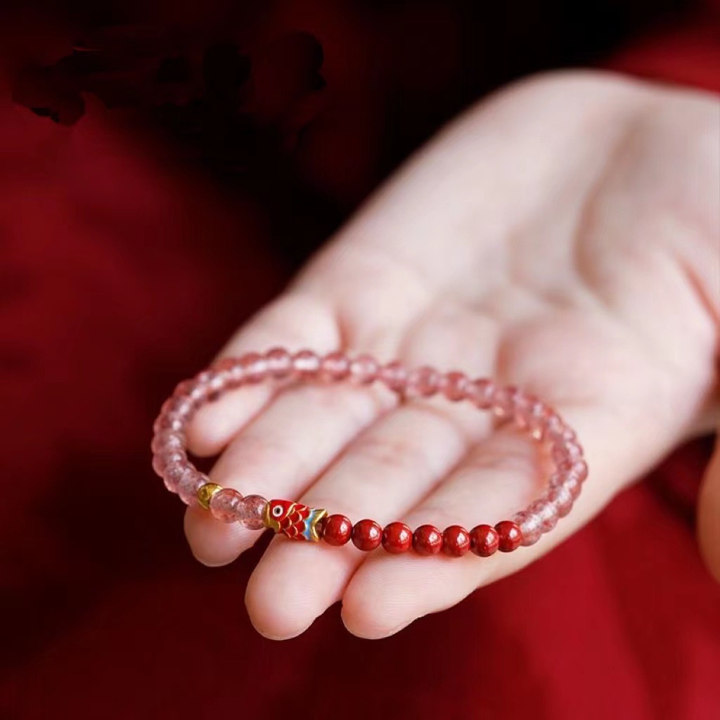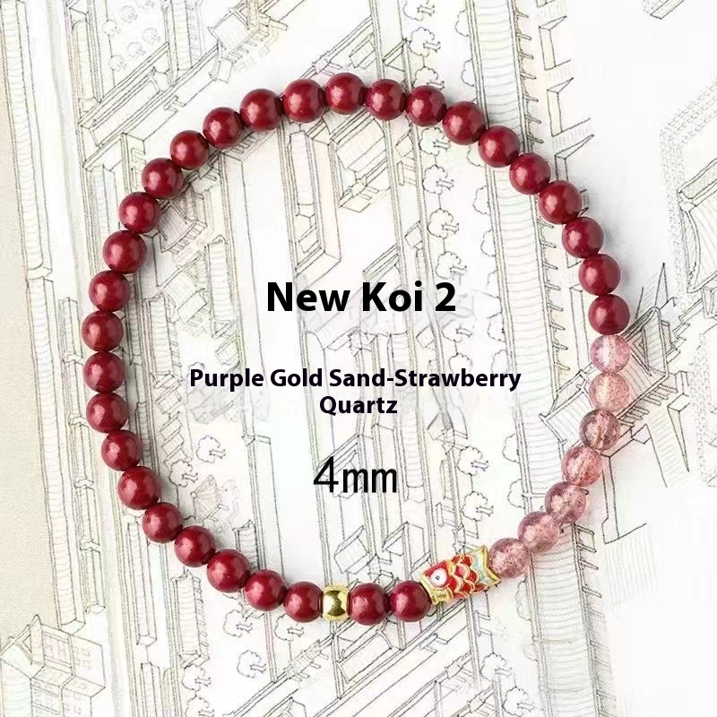 Koi Purple Cinnabar Lucky Beads Peach Blossom Strawberry Quartz Bracelet